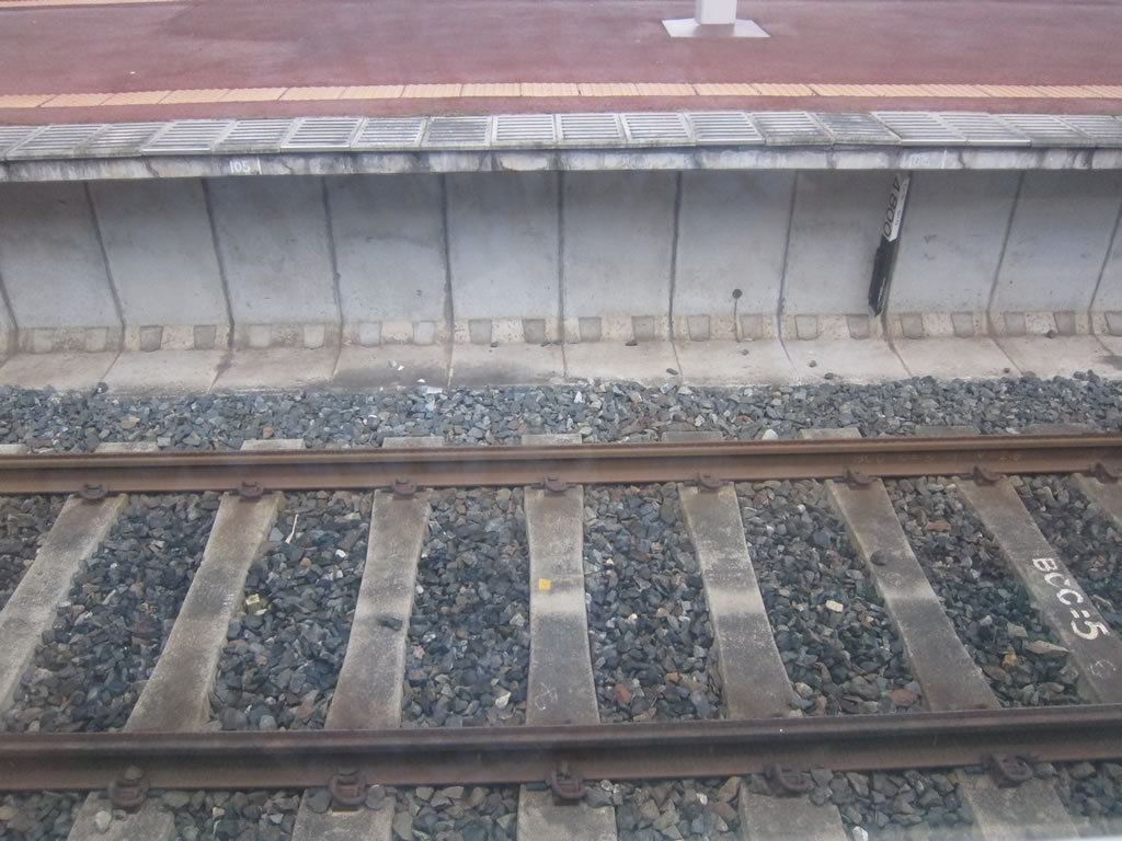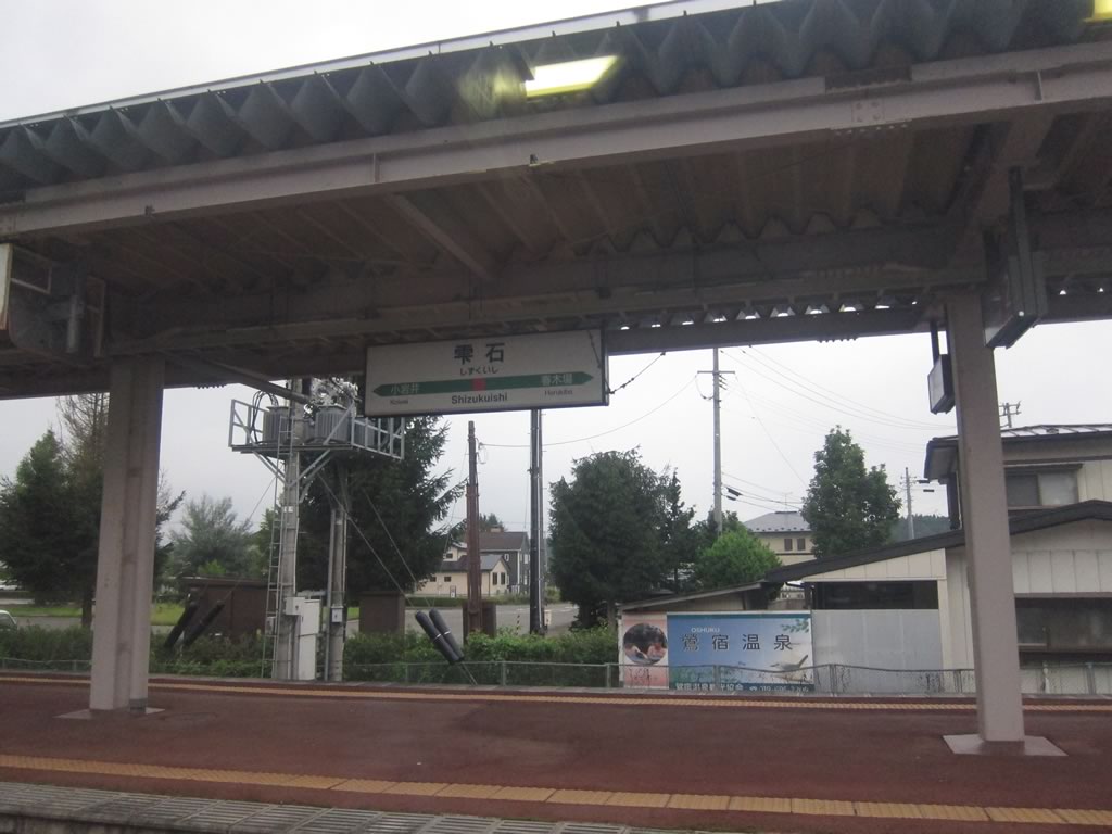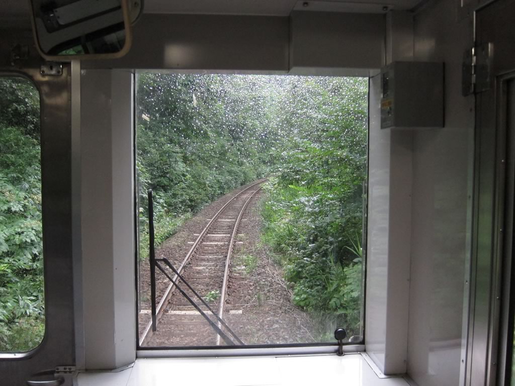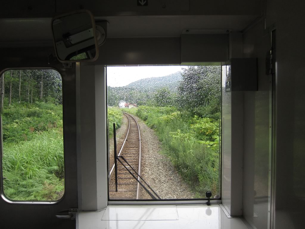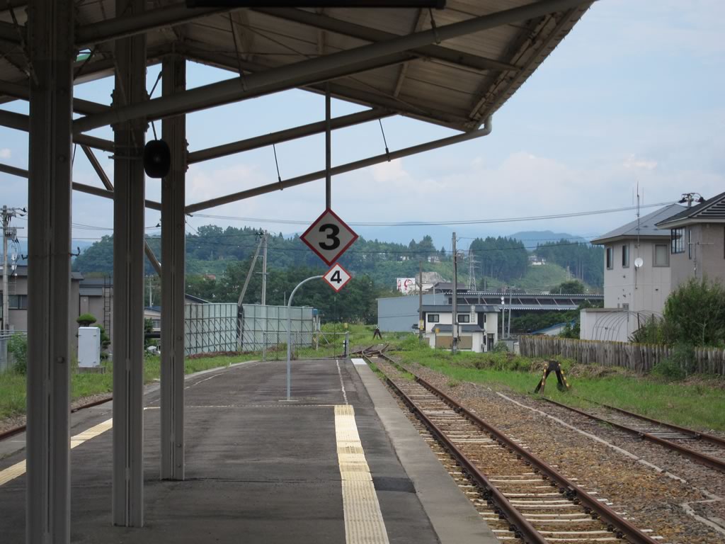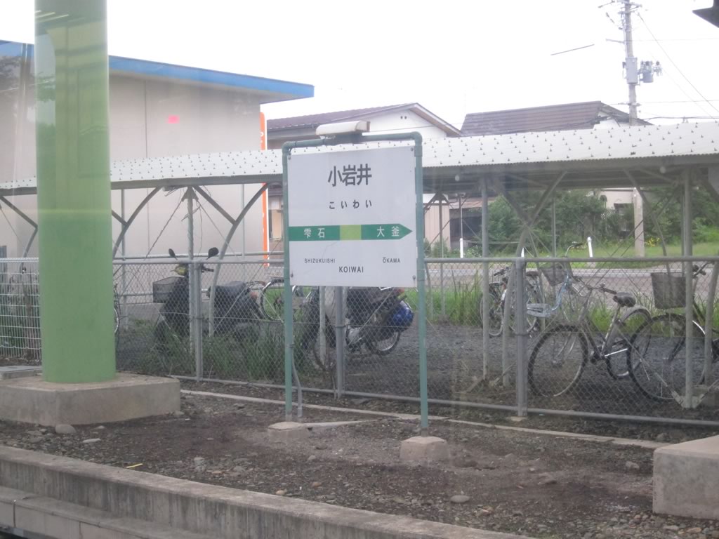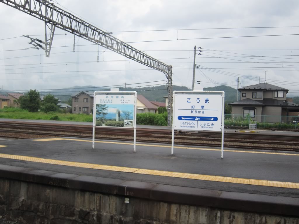 小岩井,雫石と耳にする駅名を過ぎ,赤渕駅でしばし停車。よく見ると,レールが標準軌であることが分かります。
