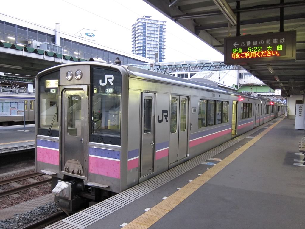 …の前に、まずは田沢湖線盛岡−角館間を早朝に往復。秋田新幹線に比べ,県境を越える普通列車は極端に本数が少ないため,この区間を往復するのは難易度が高いンですな。おかげで朝5時台の電車に乗ることになってしまったよ(^ ^;)。