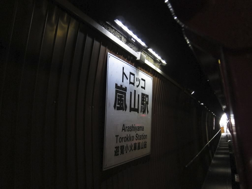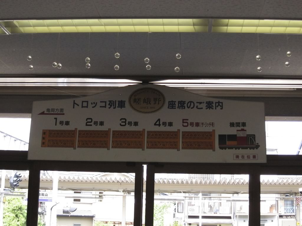トロッコ嵐山駅は,ホームの有効長が短いので,1・2号車はトンネル内で停車。