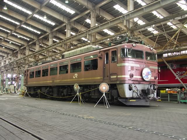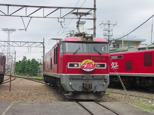 ますば,JR貨物富山機関区の車庫見学へ。貨物のことはよく分からない&あまり興味がない(^ ^;)のだけど,新型・旧型の機関車が,お手製のヘッドマーク付きで“多数”展示されていましたね。ちなみに,JR貨物富山機関区は,今年で設立40周年だそうです(だからイベントをやっていたのだろうね)。