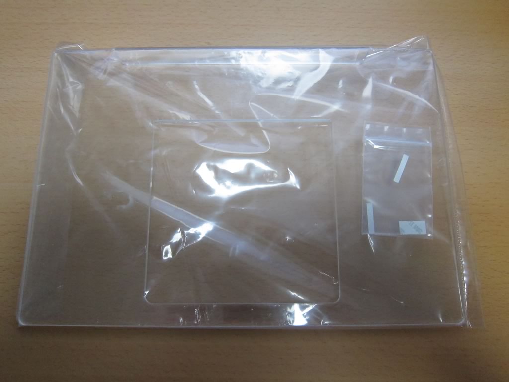 見た目単なるアクリル板なのだけど(荷物の品名も「プラスチック板」だった^ ^ ),国内のプラスチック加工工場で製造しているらしく,中華モノだとありがちながたつきも無く実に良好な作りです。ただ,同梱されていたのは本体とゴム足だけで,納品書・領収書はおろかマニュアルも付属せず,一瞬(ゴム足を)どこには貼ればよいのか分からなかったものの,探したところホームページには掲載されていましたね(苦笑)。個人的には細長いゴム足の方はプラ板の足側よりもMagic Trackpadをはめ込むための切り抜きの側面に張った方が,トラックパッドと本体のクリアランスが縮まり安定して使いやすいかな,と思いました。