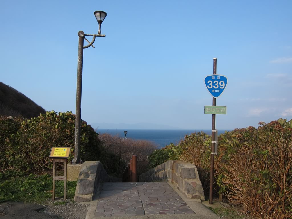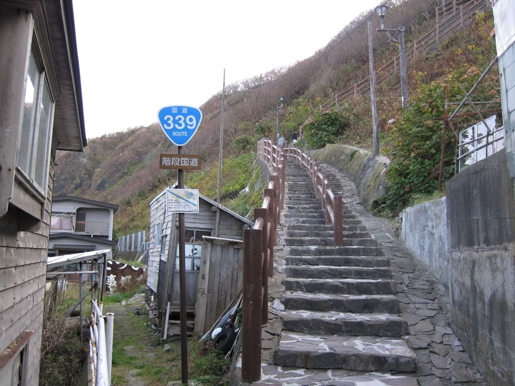 こちらは竜飛崎そばにある“階段国道”こと国道339号線。階段と坂道からなる車両通行不可なれっきとした“国道”です。