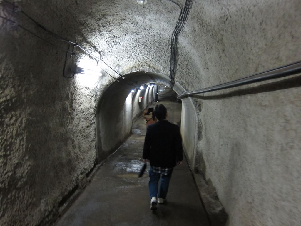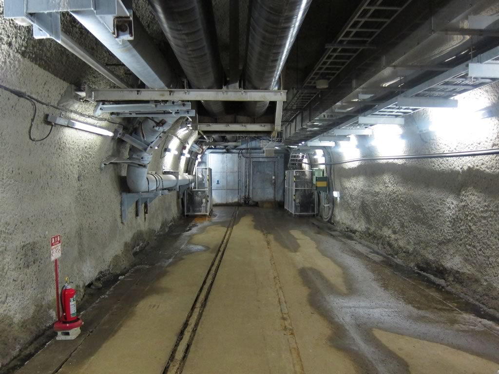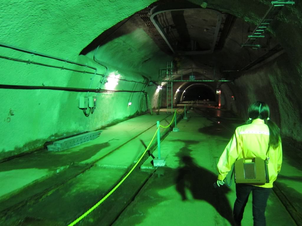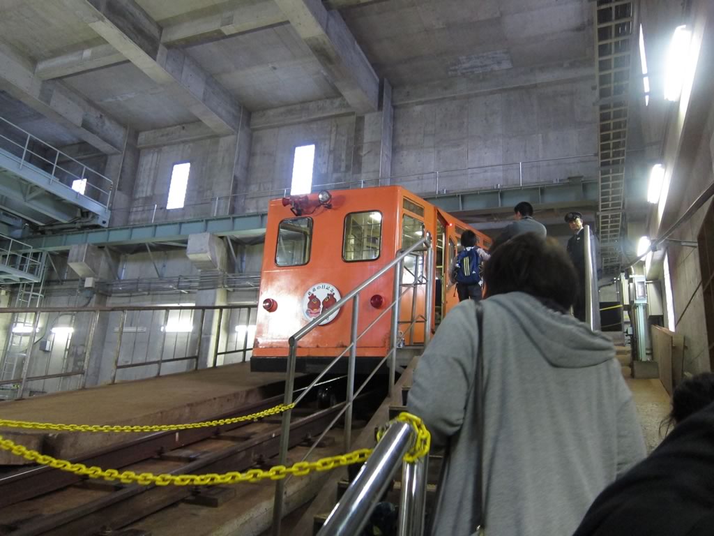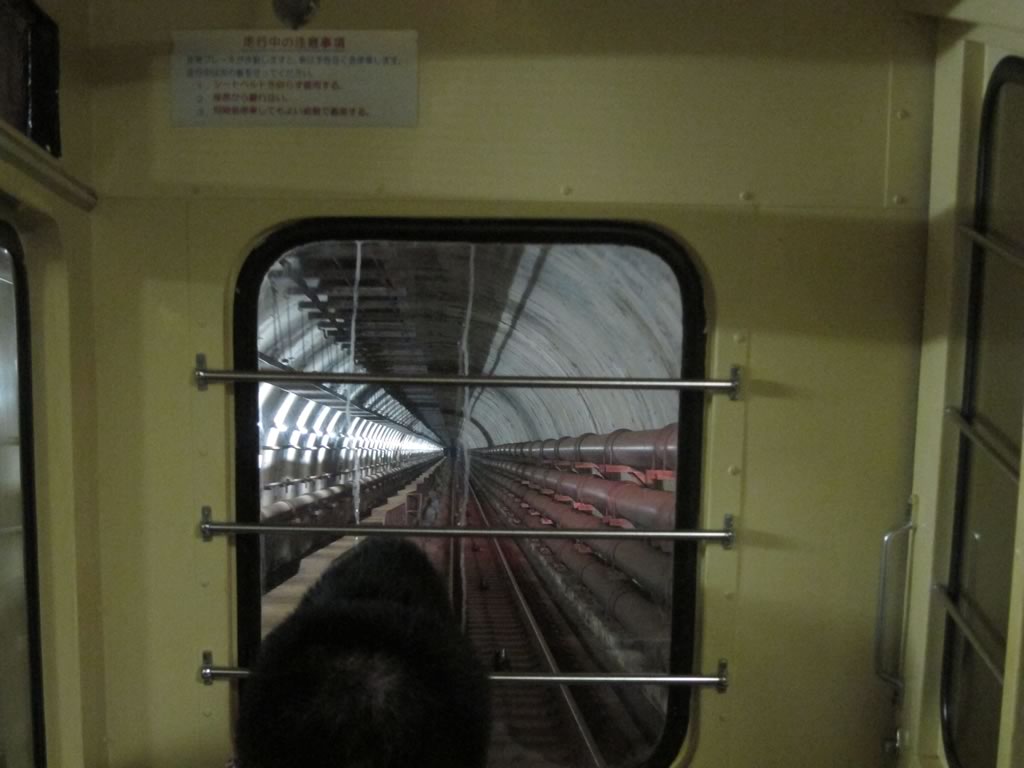 竜飛斜坑線は,青函トンネル記念館駅から体験坑道駅までを結ぶ全長約800m,海面下140mへと潜るケーブルカーの路線。青函トンネルで何かあった場合の緊急避難路的な意味合いもあります。また現在は,約40分の説明付きツアーが毎日行われています(冬期休館日は除く)。