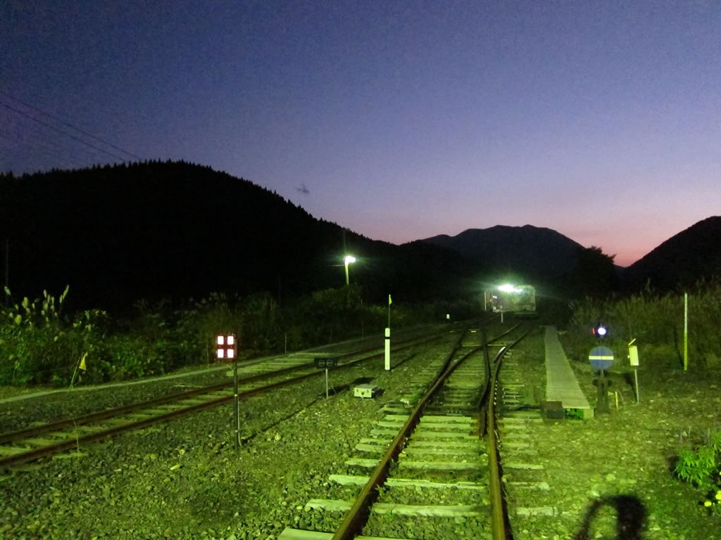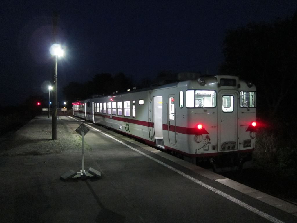 夜の帳が降りた三厩駅。一日5本しかないので,17時43分発が最終列車。
