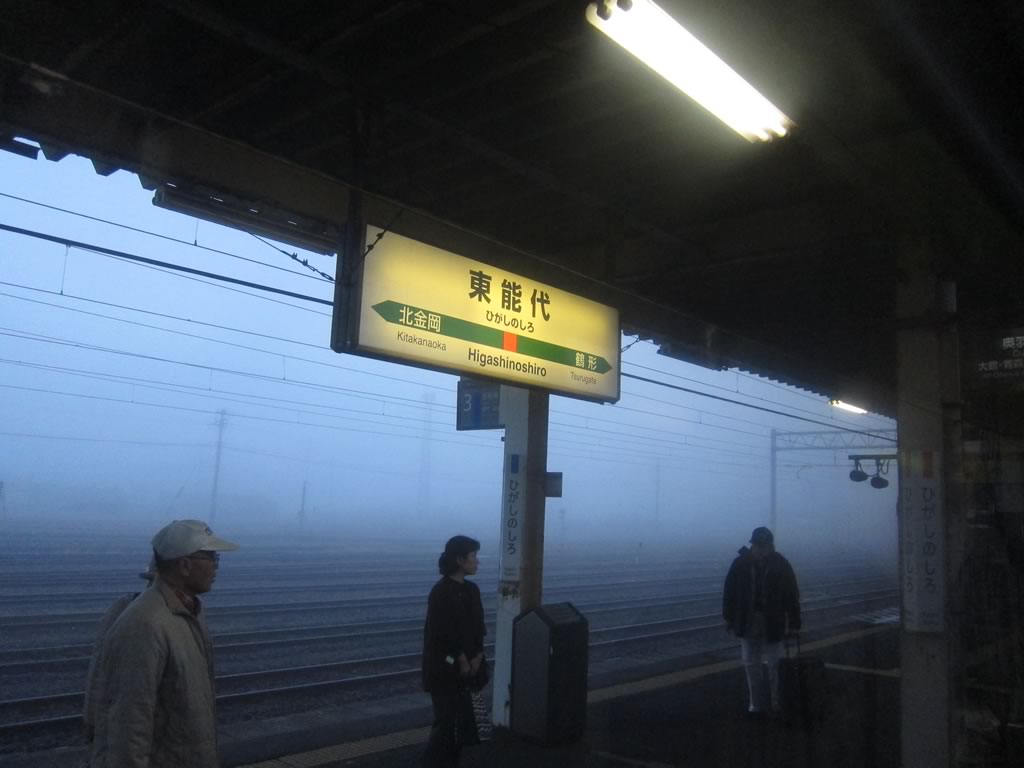 翌朝東能代あたりで目が覚める。濃い霧の中を定刻通り列車は走る。