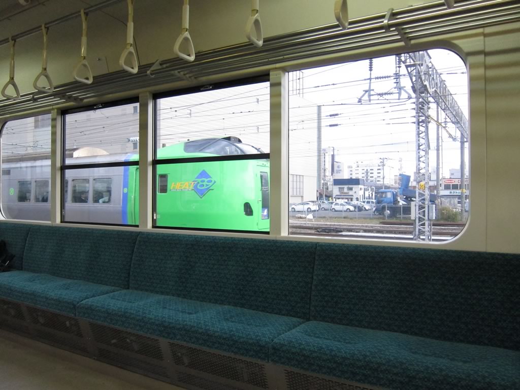 日本海号の車内(今回はJR東日本の車両)。今となっては数少ない喫煙可能な列車なのだけど,嫌煙家としては15時間紫煙棚引く車内にいるのはツラかった。