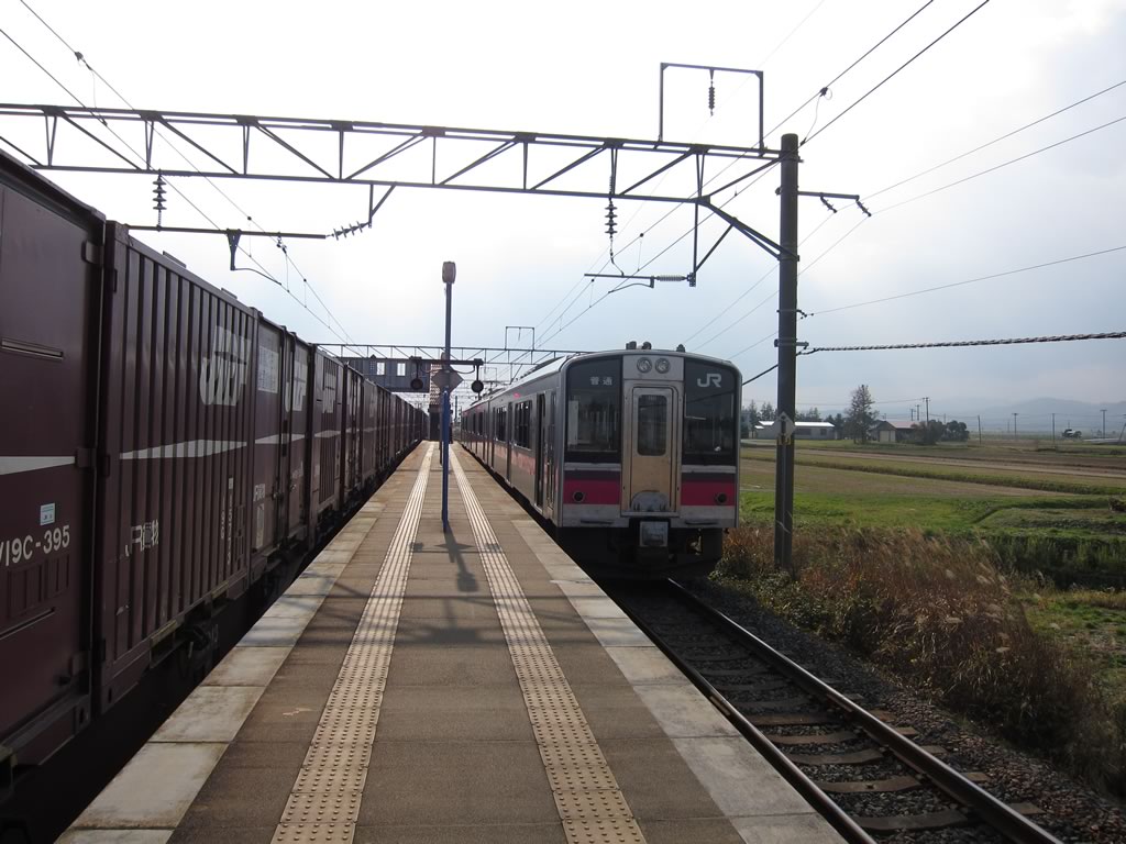 中小国駅で津軽線と青函トンネルにつながる津軽海峡線とが分岐。しかし,両路線は隣の津軽二股駅(津軽線:JR東日本)・津軽今別駅(津軽海峡線:JR北海道)で接近するのですねー。