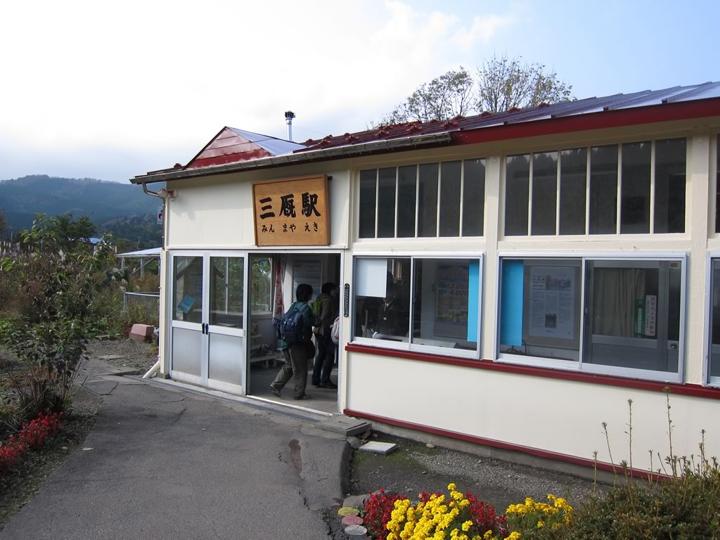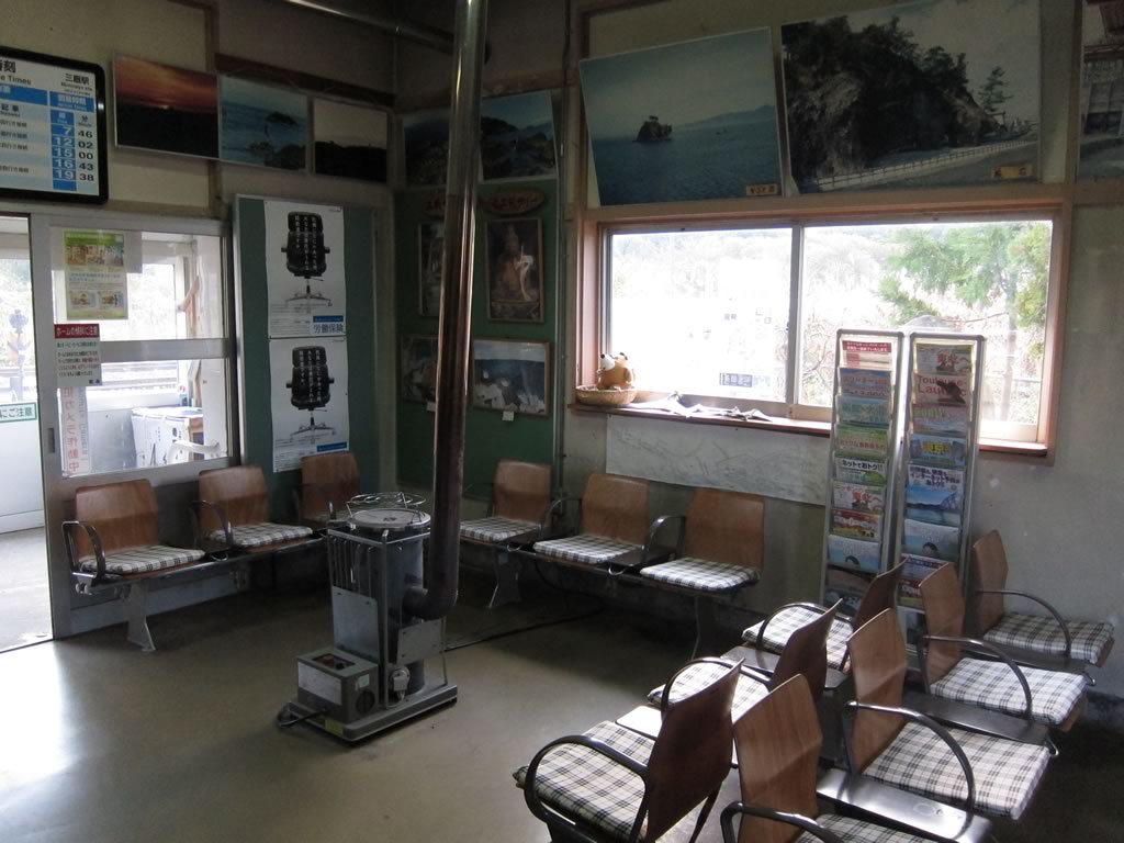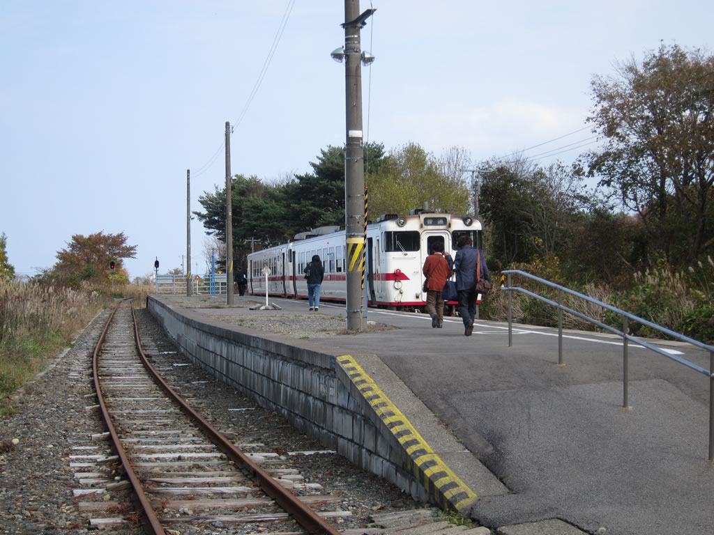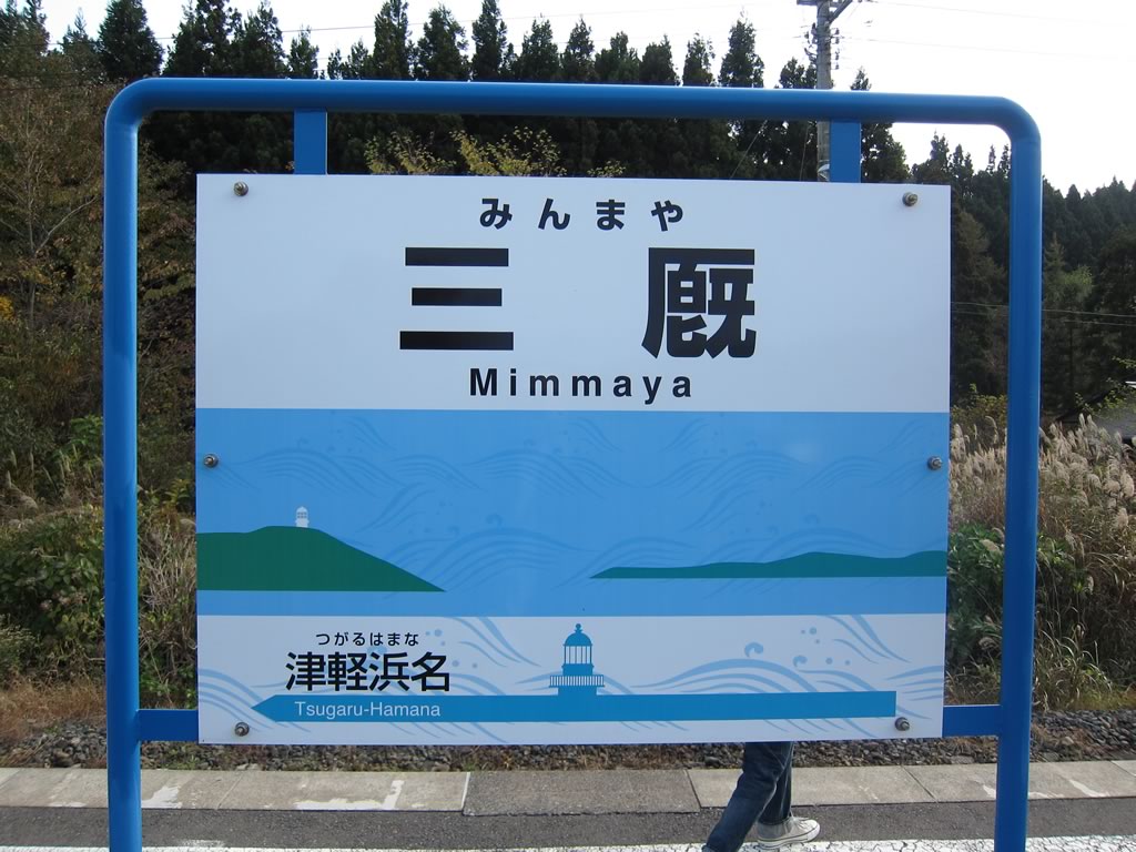 三厩駅到着。ここから竜飛崎までは,外ヶ浜町の町営バスで移動(約30分)。片道100円と超割安。