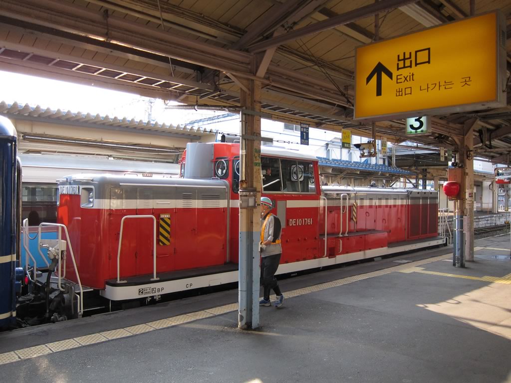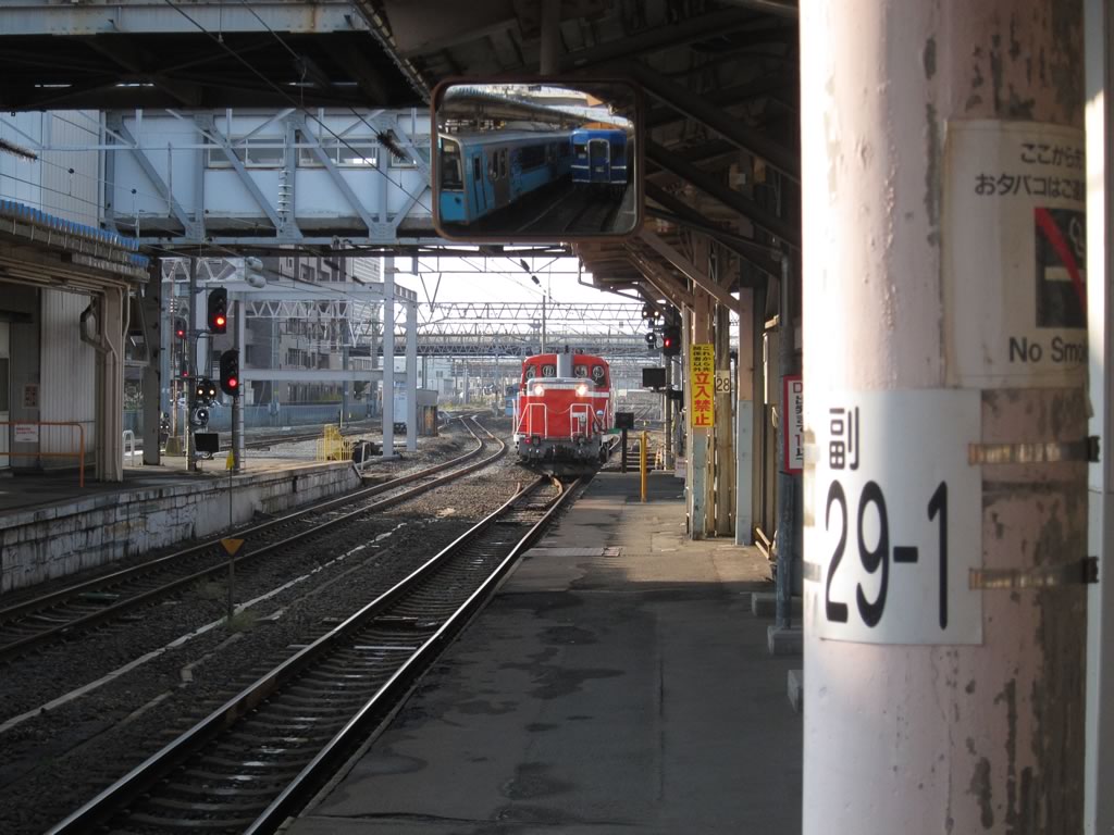 翌朝8時45分青森駅着。客車を車庫へと牽引するディーゼル機関車がすぐにやってきました。