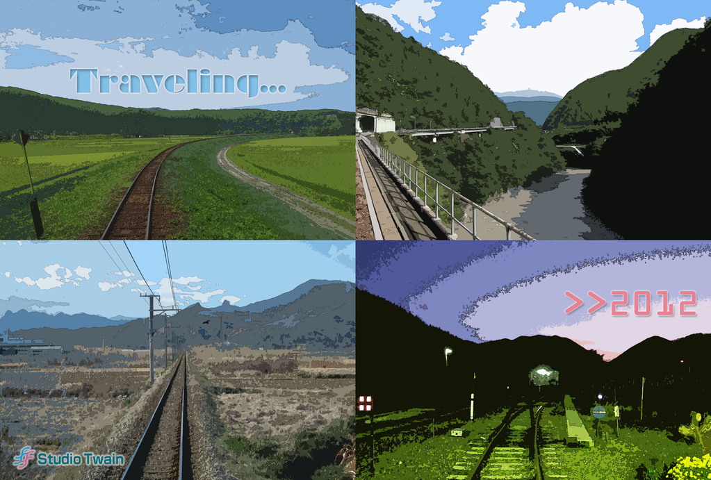 今回は,昨年乗った路線の写真をイラスト風に加工し,年賀状に使いました。年間を通して使える(?)デスクトップピクチャも用意しています。