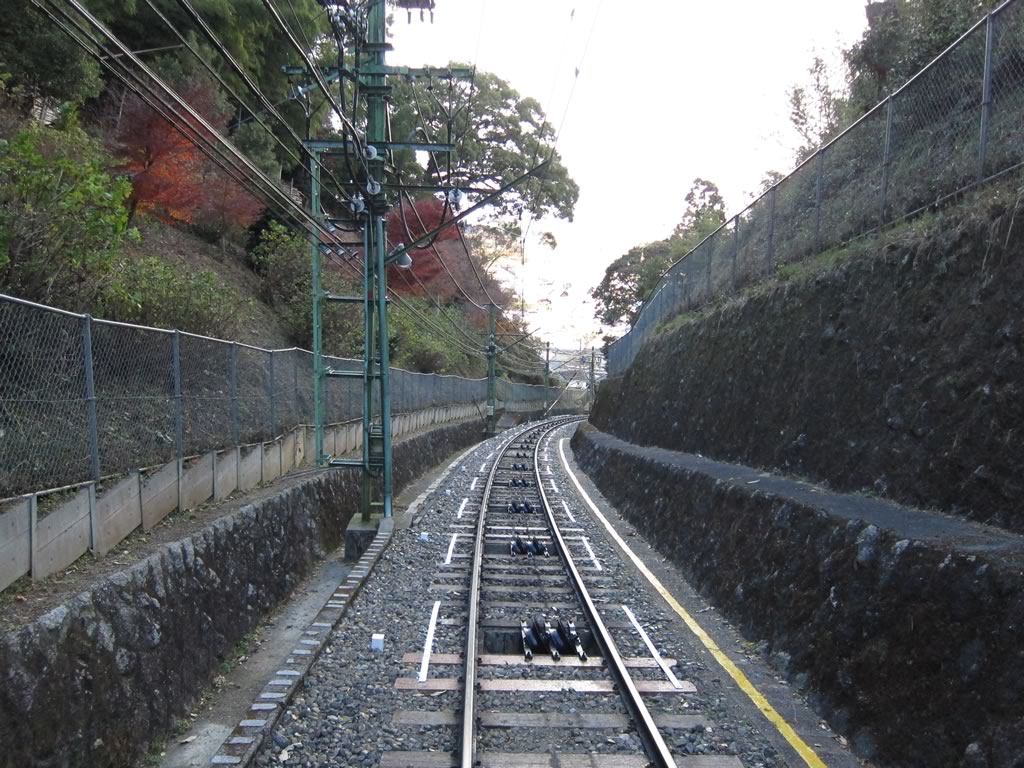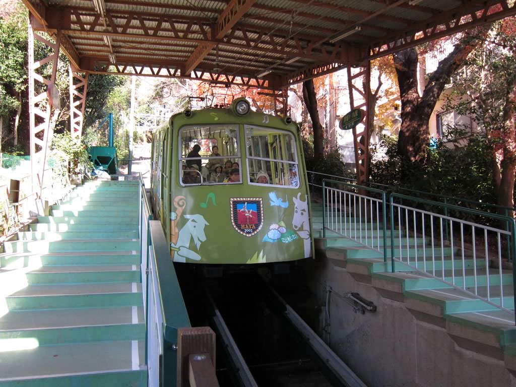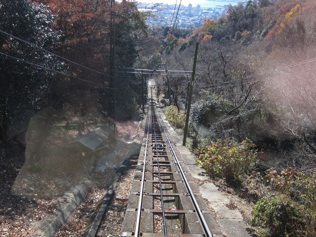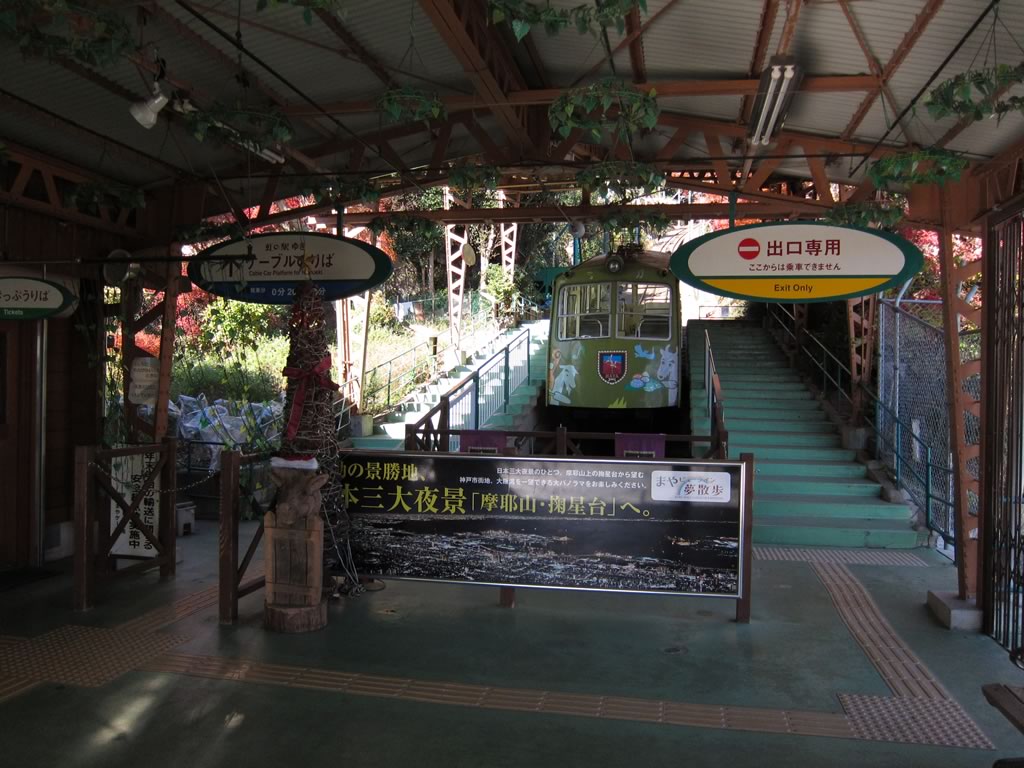 本日一本目は,摩耶山に通じる摩耶ケーブル。よりによってクリスマスイブイブな23日の早朝,ケーブルカーに男一匹乗りに行くことになるとは(^ ^;)。おまけにケーブルの駅に連絡するバスを逃してしまい,阪急六甲駅からタクシーで駆けつけてしまった(苦笑)。