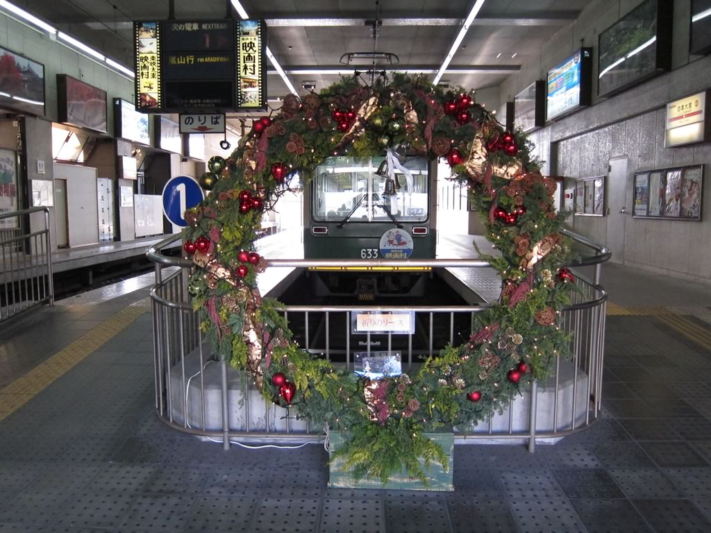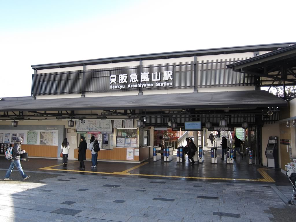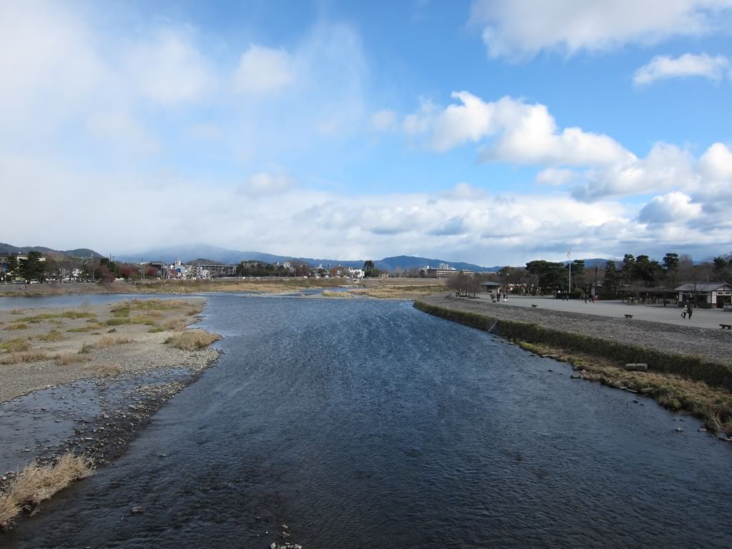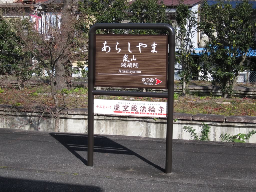 続いて阪急六甲から阪急嵐山駅まで移動し,嵐電嵐山駅まで徒歩連絡(約900m)。途中の桂川は景観はヨイが,サムい〜。
