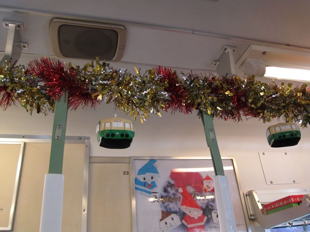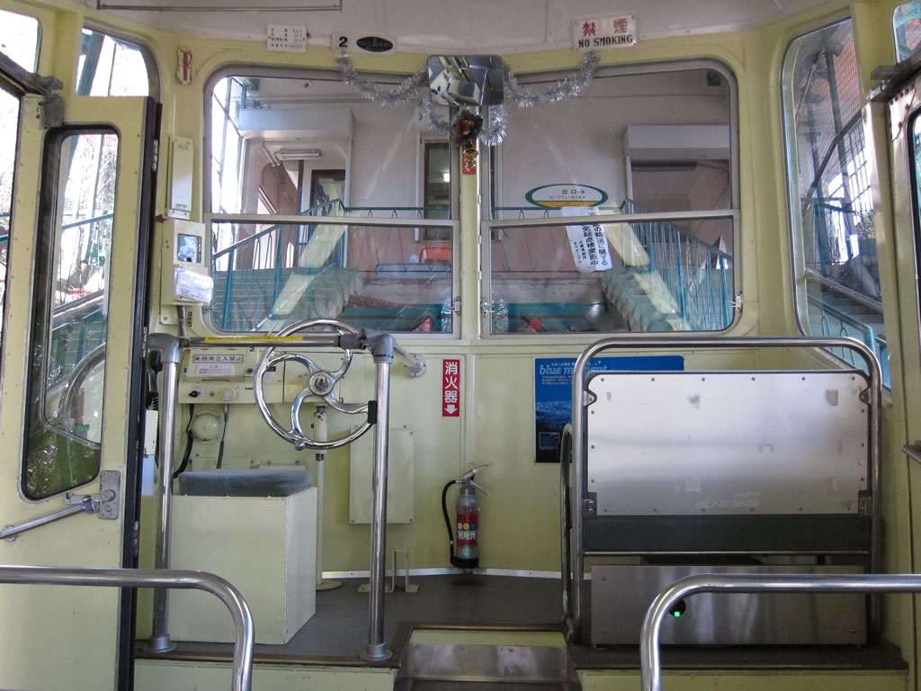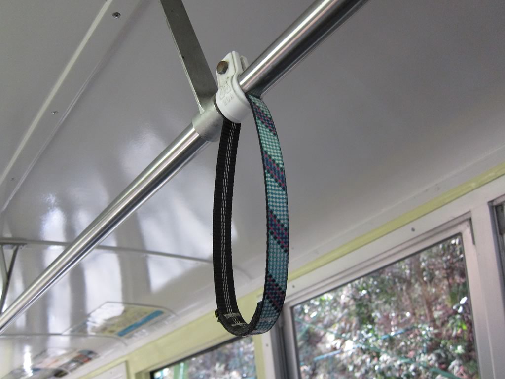 摩耶ケーブルの車内。紐状の吊革(と言うのだろうか?)が特徴的。