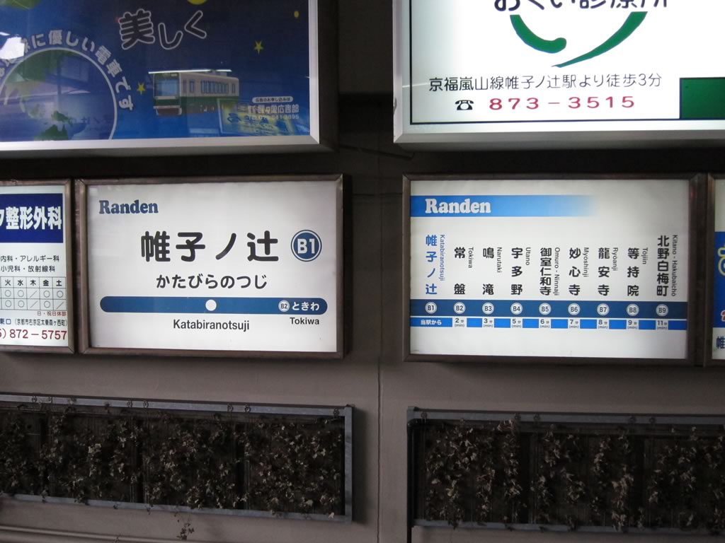 帷子ノ辻駅で北野線に乗り換え,北野白梅町駅へ。さらに帷子ノ辻まで引き返し,今度は四条大宮駅まで乗車。