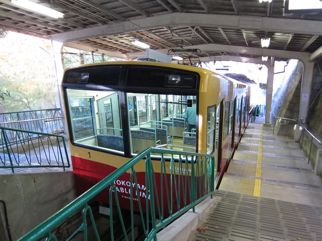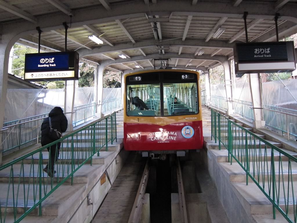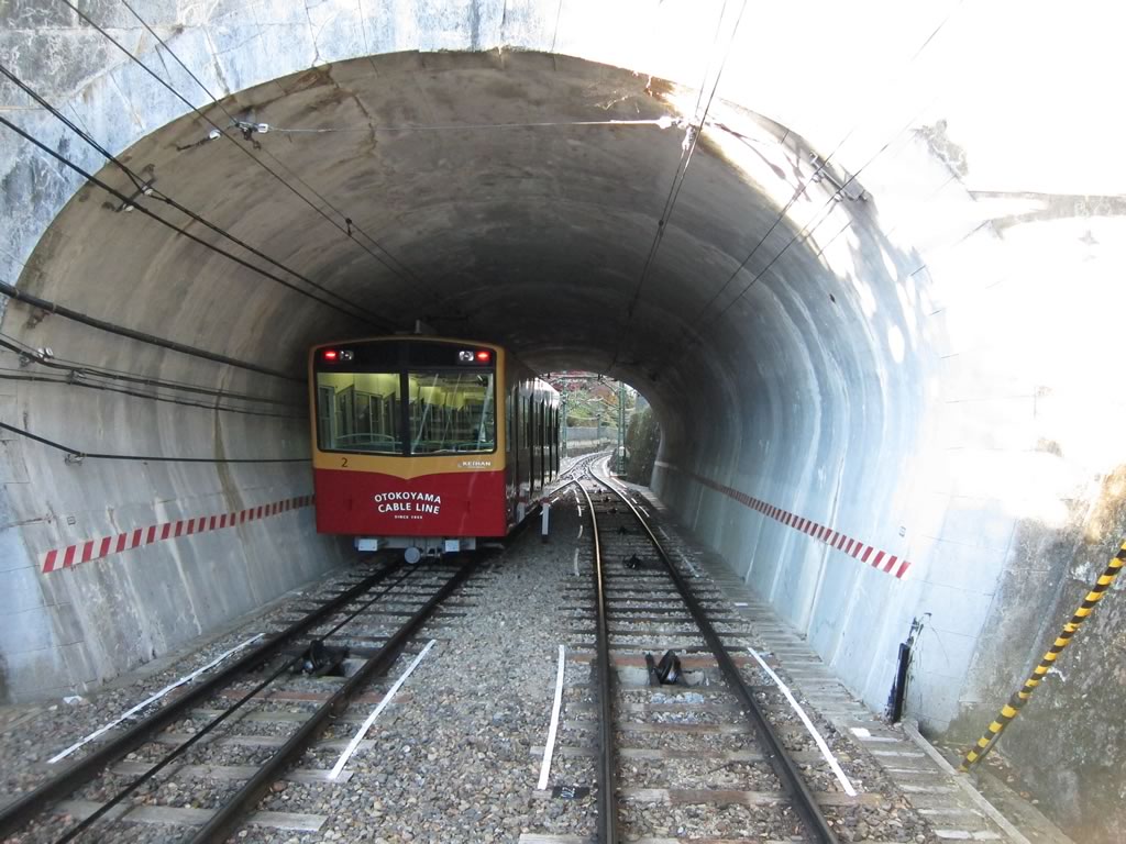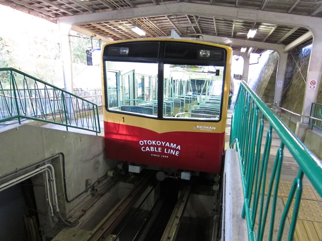 嵐電天神川→太秦天神川→三条京阪→三条→八幡市の順に移動し,今度は男山ケーブル(京阪鋼索線)に乗車。ケーブルカーを一日に二箇所渡り歩くことになるとは。
