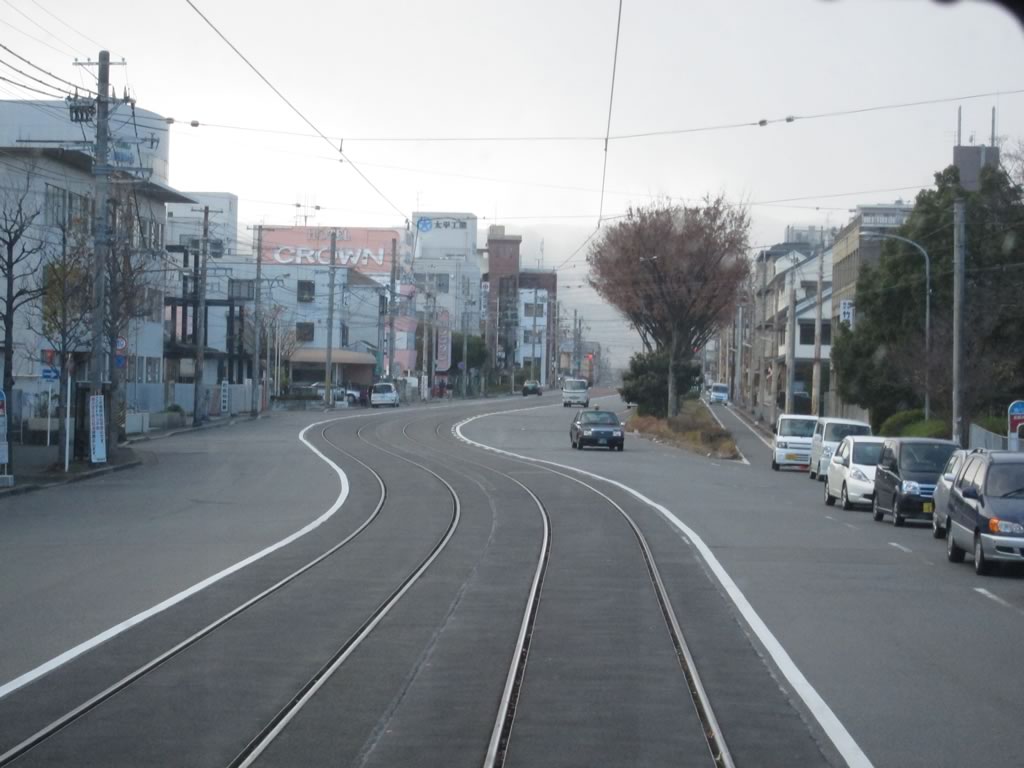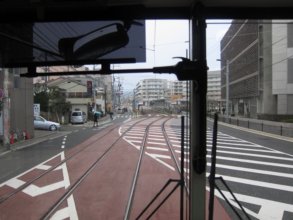 西大路三条駅−山ノ内駅間は併用軌道を走ります。