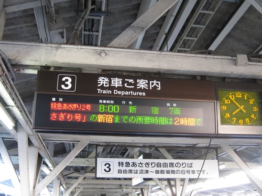 まずは,来春のダイヤ改正で引退することになったJR東海の371系電車(特急あさぎり号)に沼津から乗車。小田急小田原線直通のこの列車も,来春からは御殿場駅までに区間が短縮されるそうです。