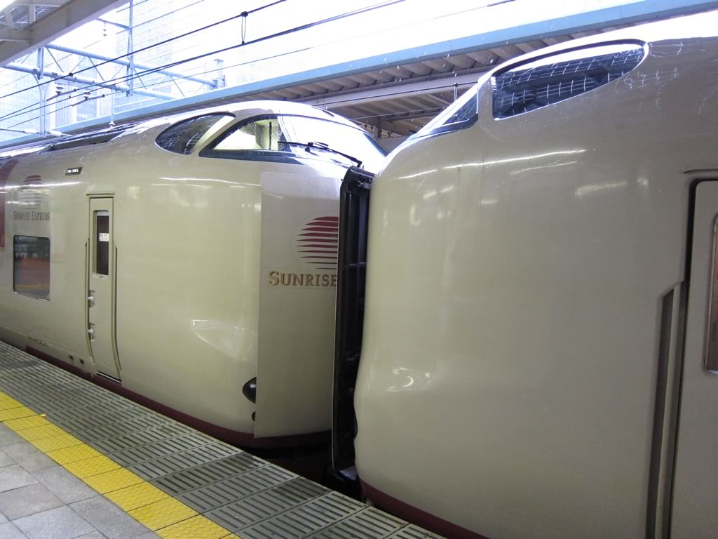 …といいながら最初から特急ですな(^ ^;)。今や東海道線を走る唯一の寝台列車になったサンライズ瀬戸・出雲号に乗車〜。