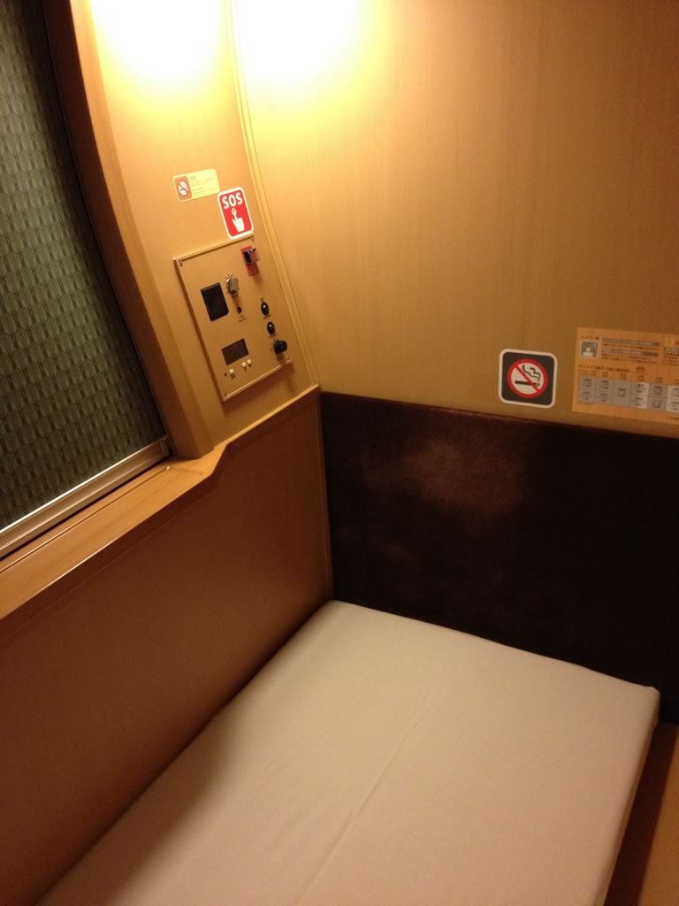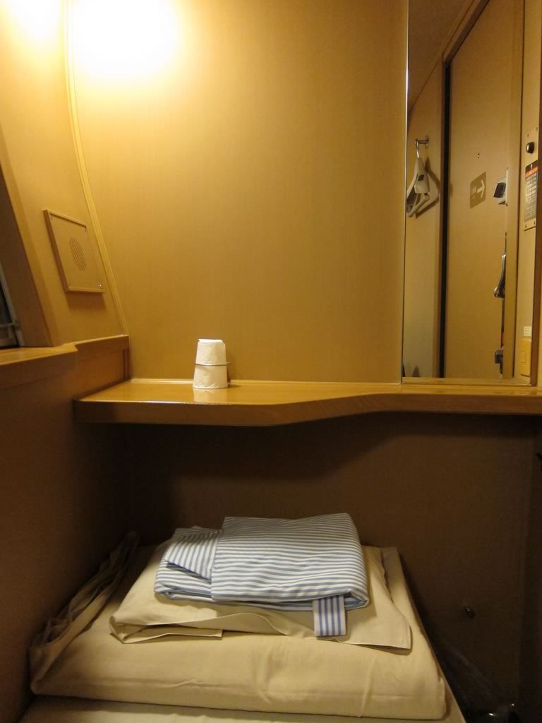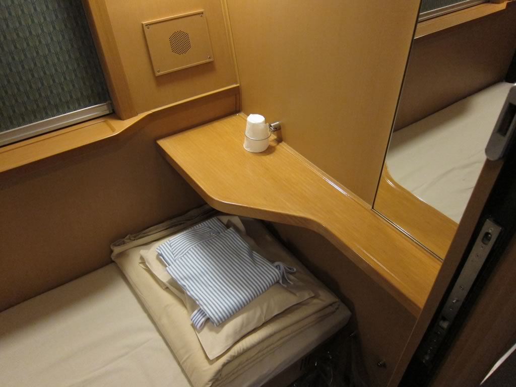 B寝台シングルの車内。荷物を置くスペースがあまりないのが難点。