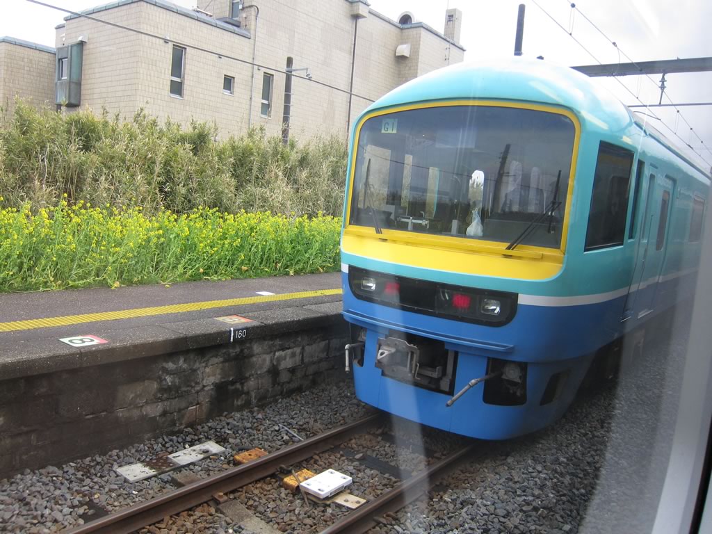 485系改造車(ジョイフルトレイン)こと“ニューなのはな”とすれ違う。