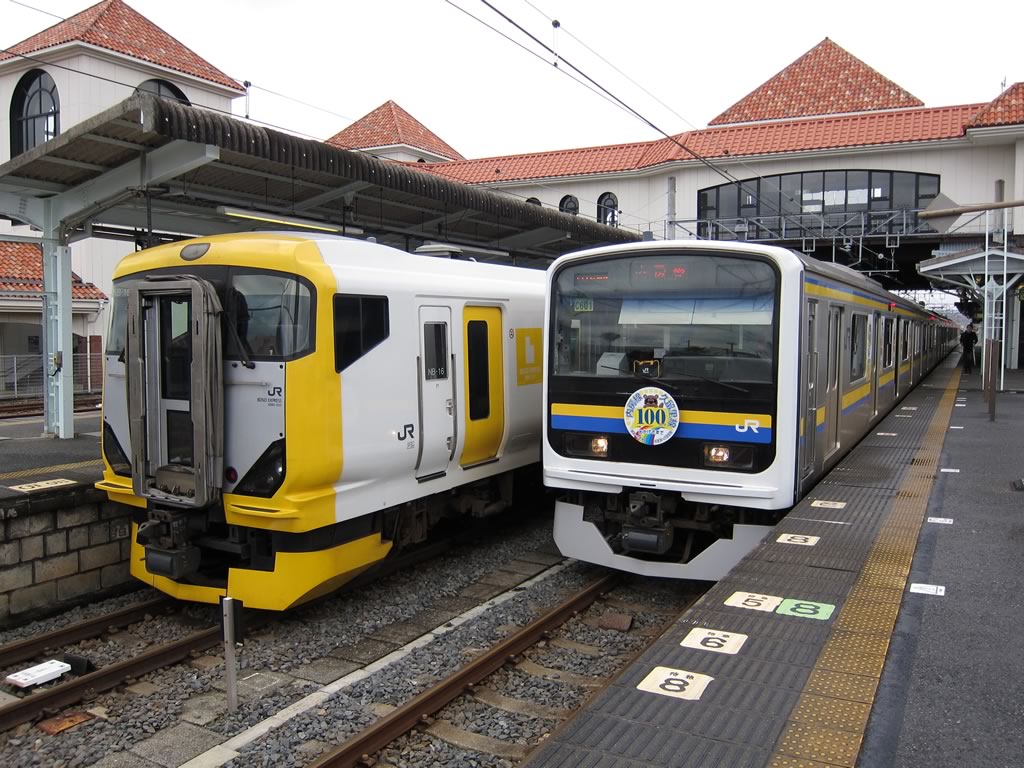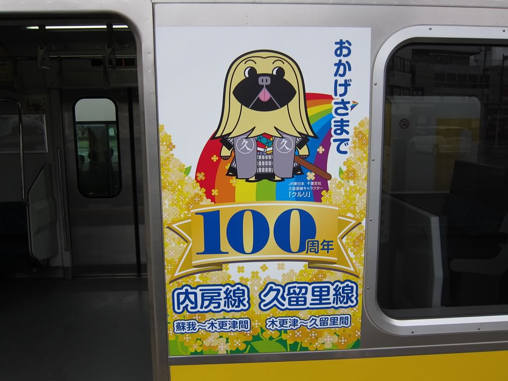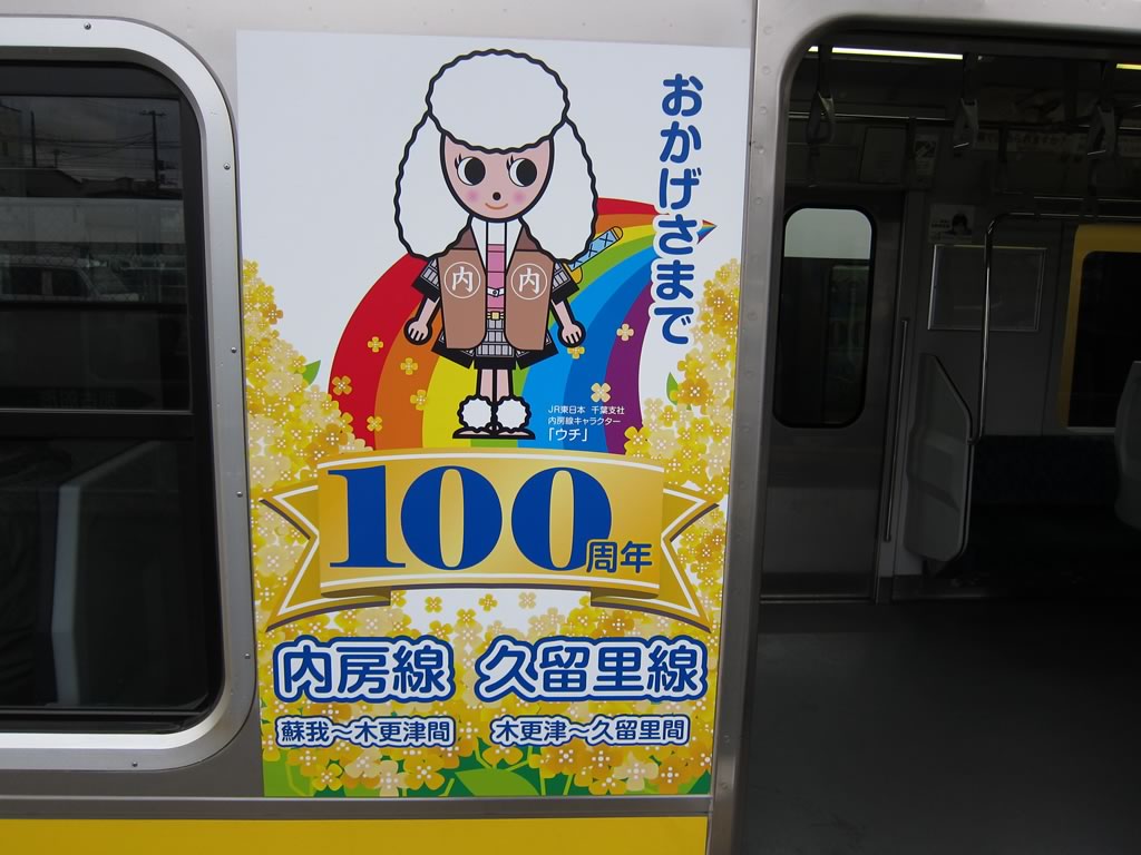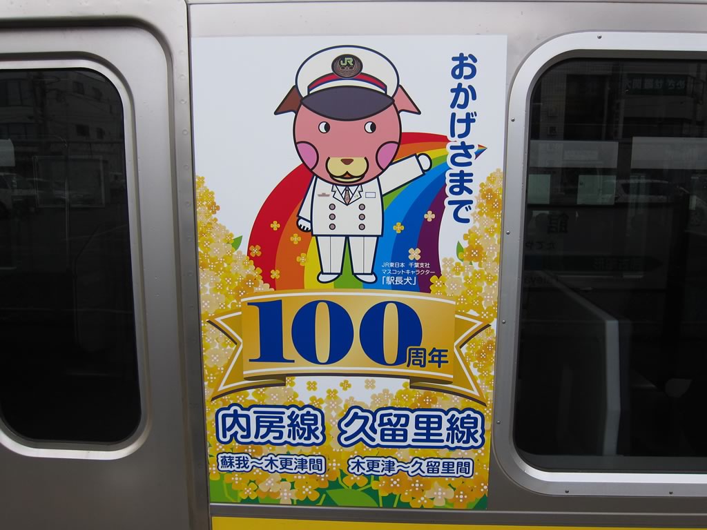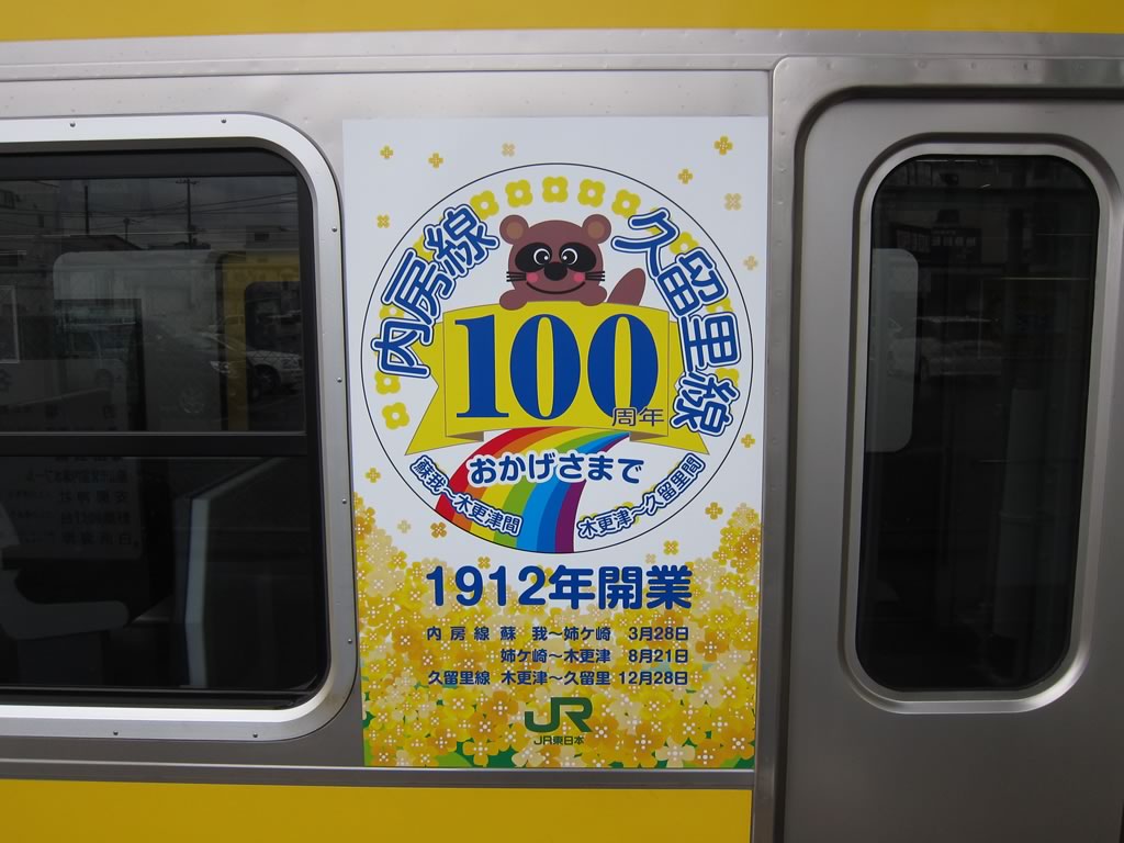木更津に戻った後は,安房鴨川方面に向かいます。内房線・久留里線100周年記念のステッカーが車体に貼られていました。