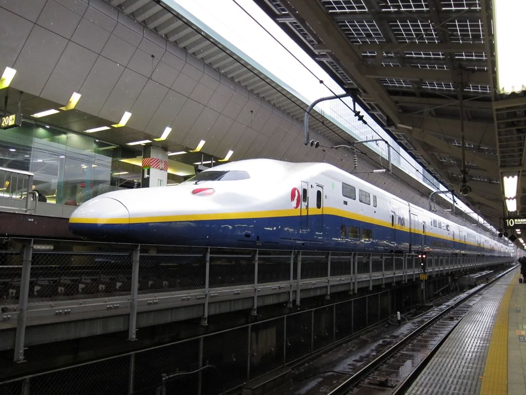みぞれがちらつく東京駅のホームには,E4系Maxの姿も。