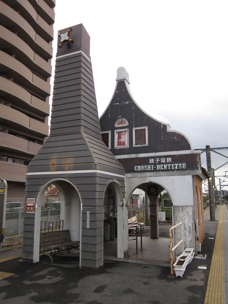 不思議なデザインの犬吠駅。