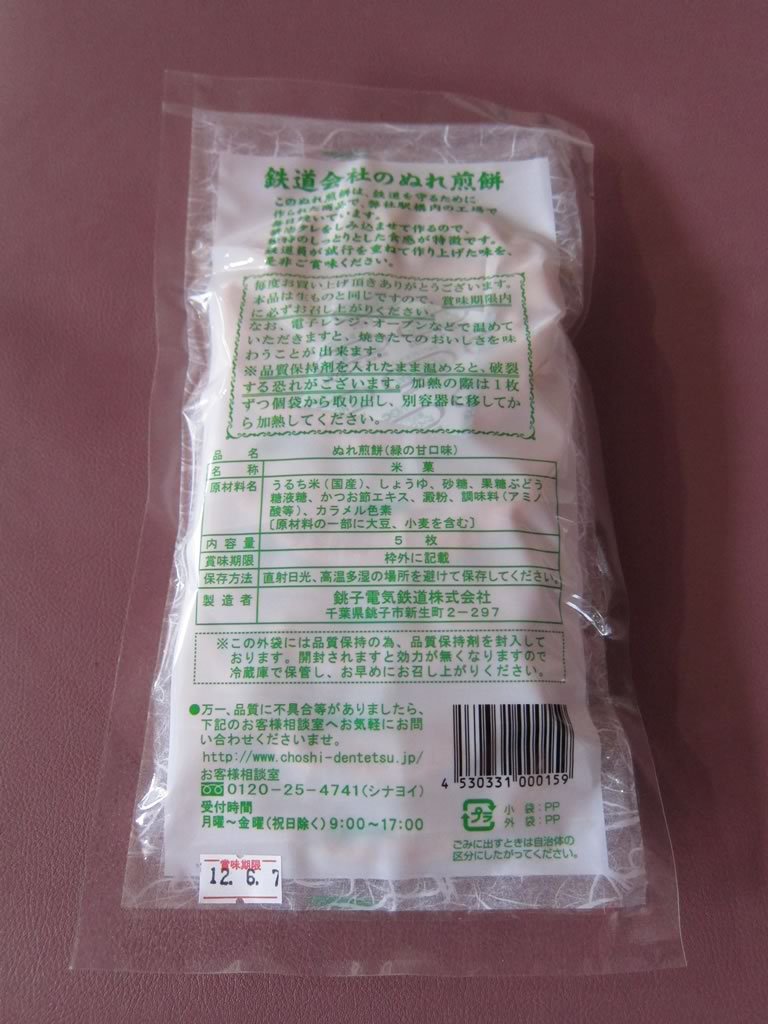 銚子電鉄といえば,「例の騒動」でも話題となったぬれ煎餅が有名なので,おやつ代わりに何枚か購入。いまの銚子電鉄はもはや煎餅屋が鉄道“も”走らせている収益構造になっていますな。