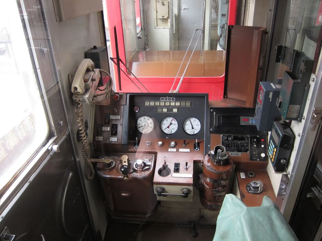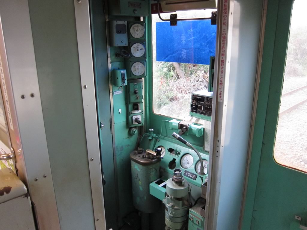 6000形気動車の車内。いまや国内では唯一となった縦形直噴エンジンが心地よい走行音を奏でます。
