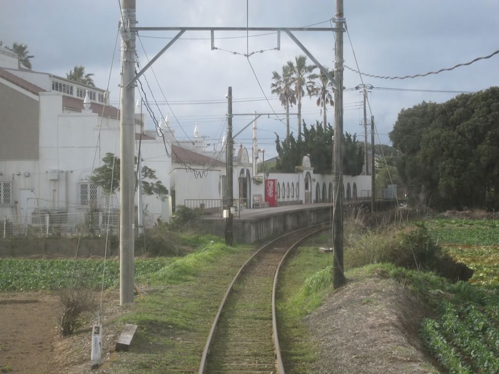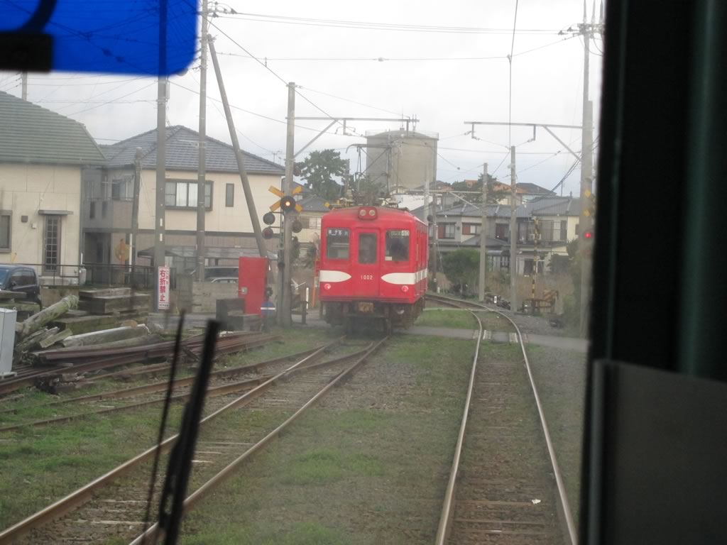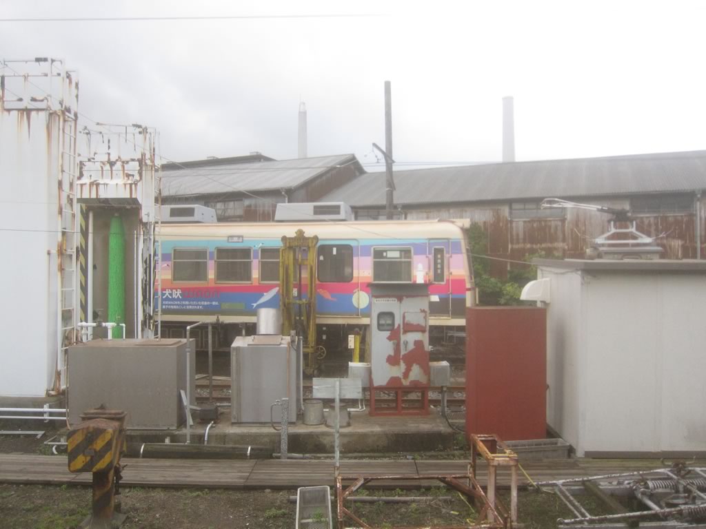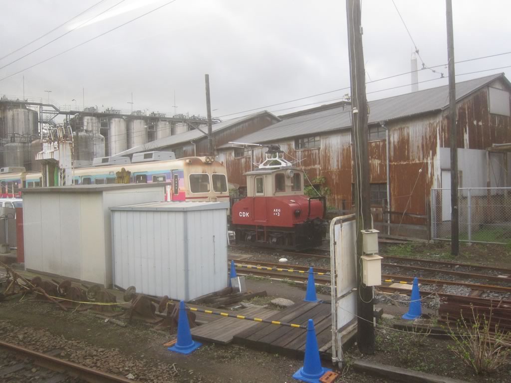 仲ノ町車庫を通り過ぎる。銚子電鉄のマスコット的車両のデキ3も一瞬見えましたね。
