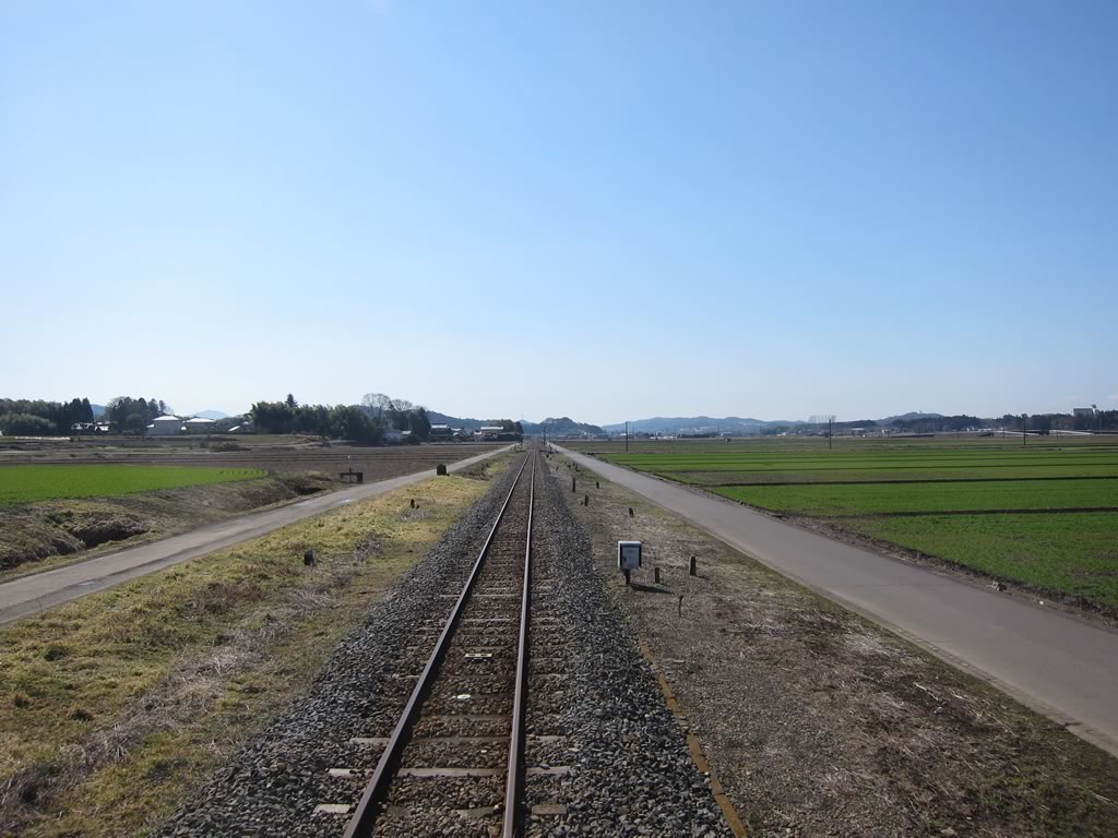 途中の水海道駅までは複線非電化というなかなかお目にかかれない路線が続きます。架線がないので視界がスッキリしていますねぇ。