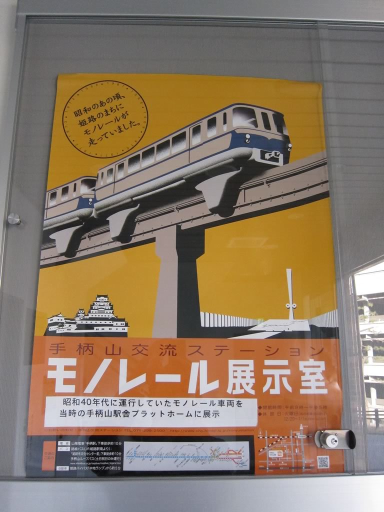 モノレール展示室は山陽電車手柄駅より徒歩10分(手柄山交流ステーション内)。隣には(山なのに)水族館があったりします。