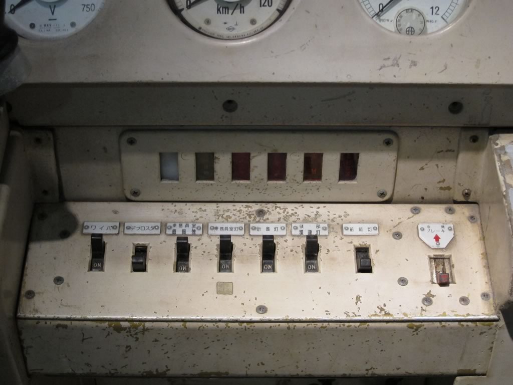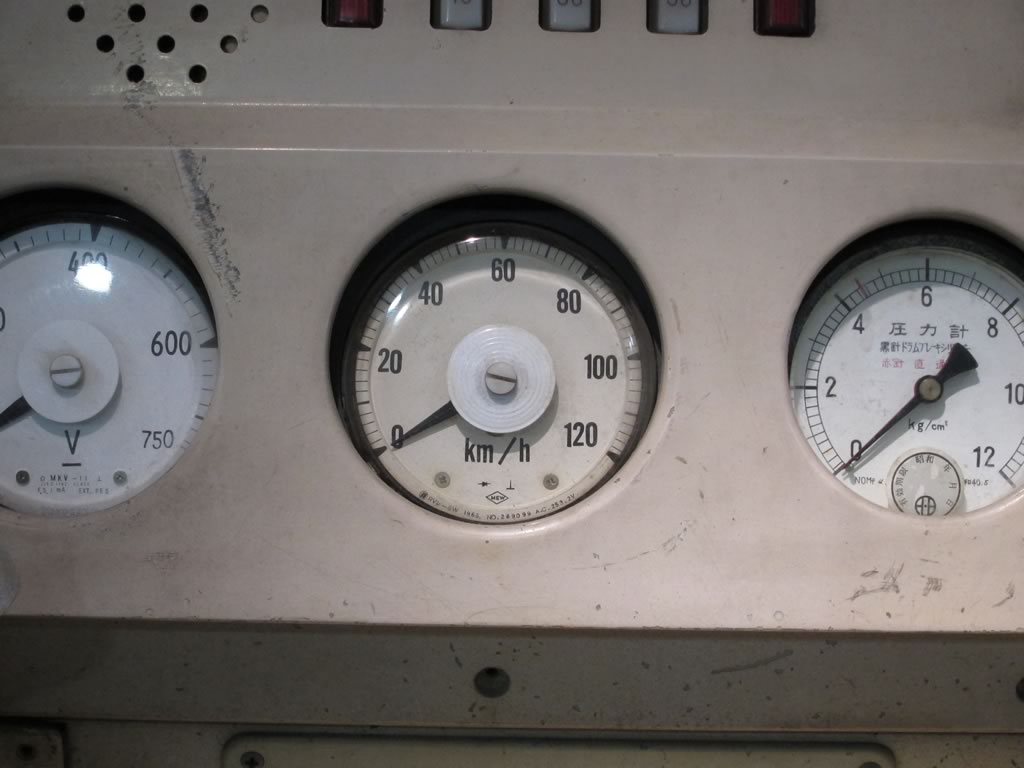 保存対象にはならなかった車両から取られた計器類。速度計は何と120kmまで目盛が刻まれていたり。