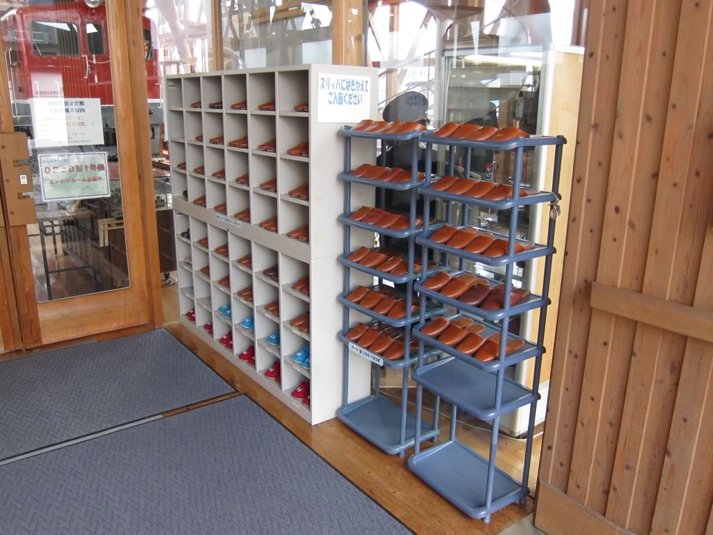 四国鉄道文化館は,この手の施設にしては珍しく土足厳禁。スリッパに履き替える。