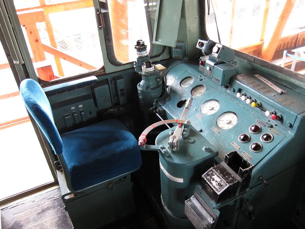 まずはDF50の運転台へ。運転席や助士席に灰皿が付いていますね。昔は運転しながらでも吸えたのかな。