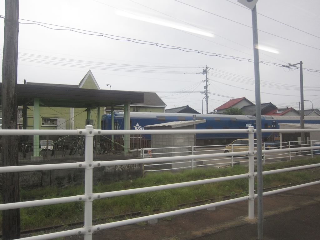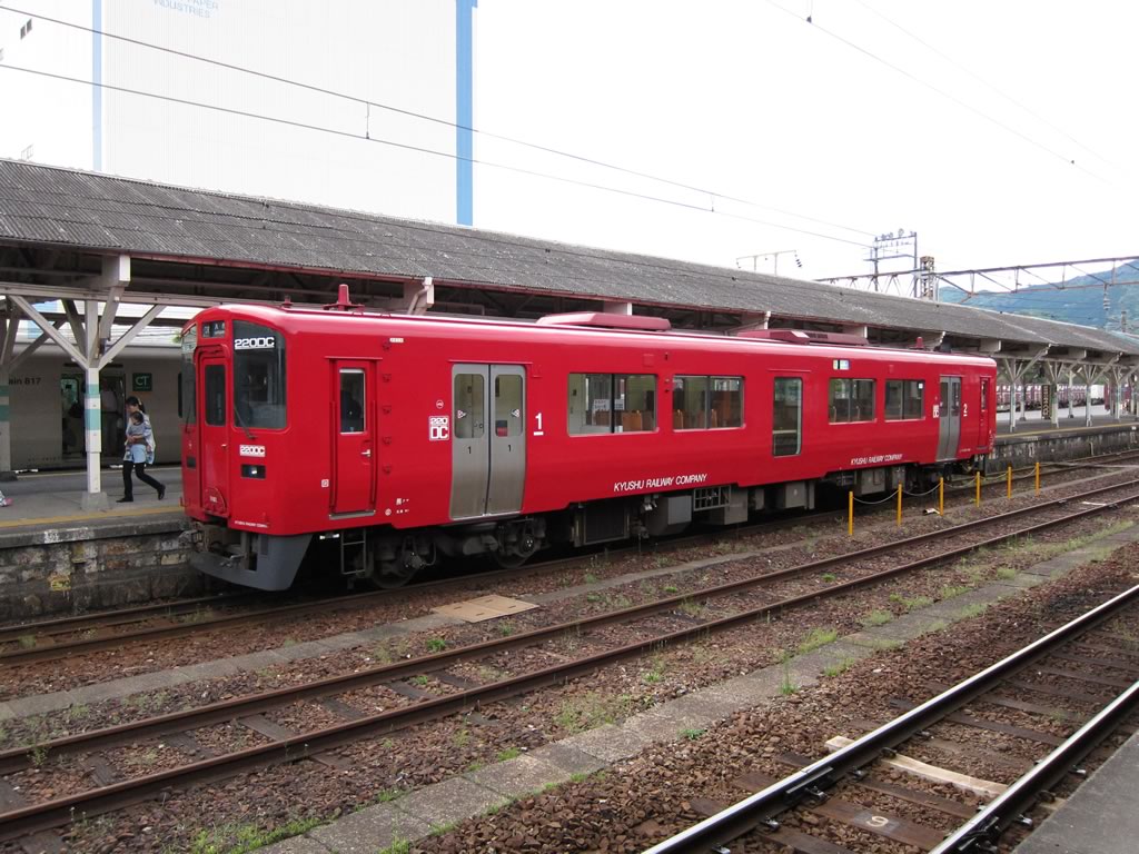熊本から八代までは快速くまもとライナーに乗車し,八代で肥薩おれんじ鉄道に乗り換え。八代駅には,肥薩線用と思われる2扉キハ220が停車していました。中間扉の準備工事がされているものの,現時点ではガラスを埋め込んだ展望席になっていますね。