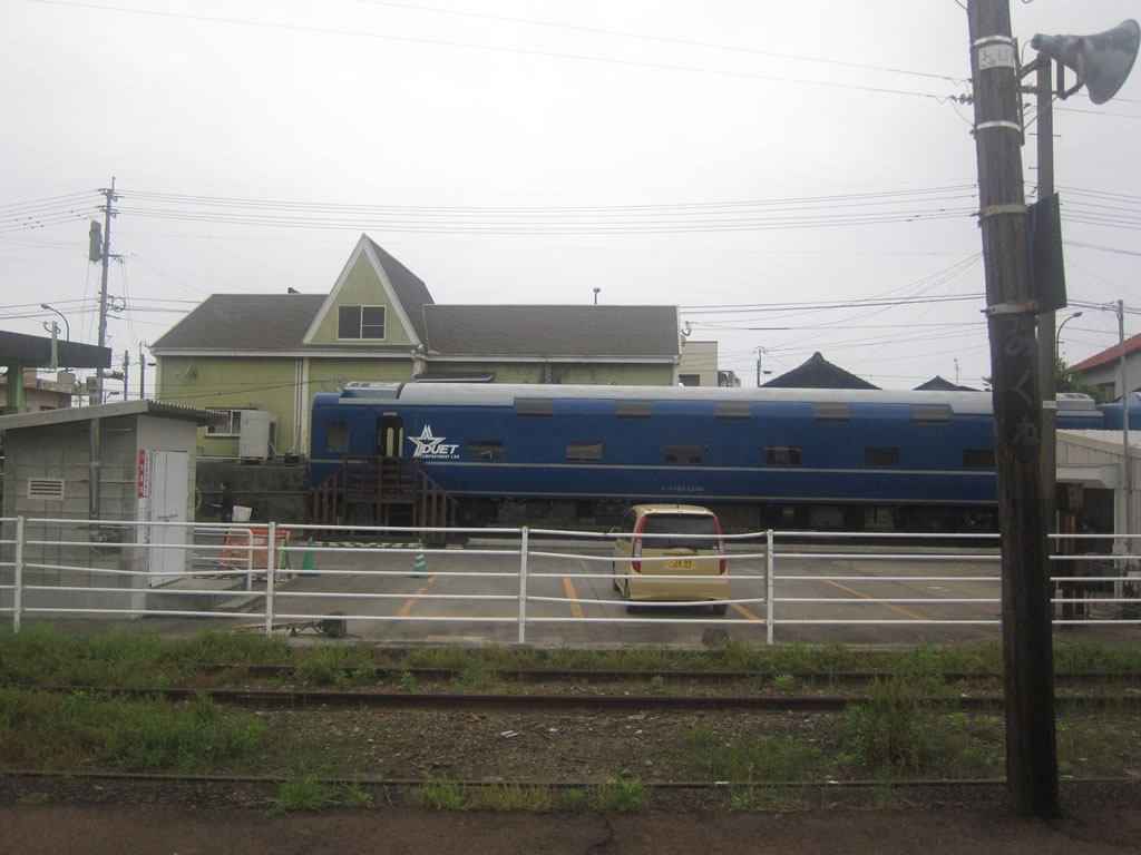 阿久根駅前にはかつて九州ブルートレインで使用されていた客車が留置されていました。どうやらライダーハウスとして利用されているようです。