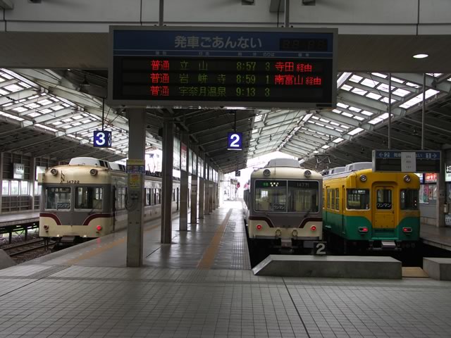 昨日は,富山ライトレール乗車後,富山地方鉄道市内軌道線線にも乗ったけど,すっかり日が落ちてしまったため,思うような写真が撮れませんでした。というわけで,市内線の写真はまたいつかということで,今日は鉄道線を追っかけてみます(^ ^;)。