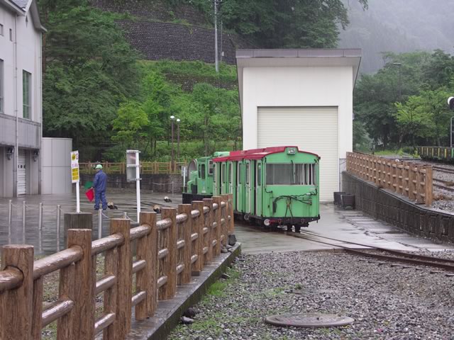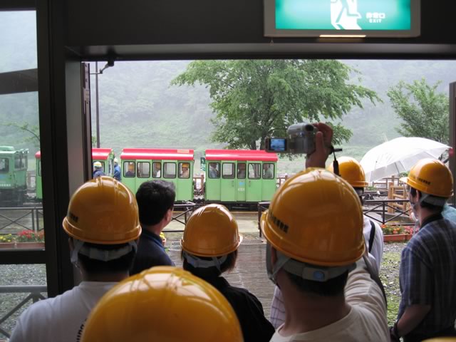 スタート地点に戻り,トロッコ列車は車庫の中へ。