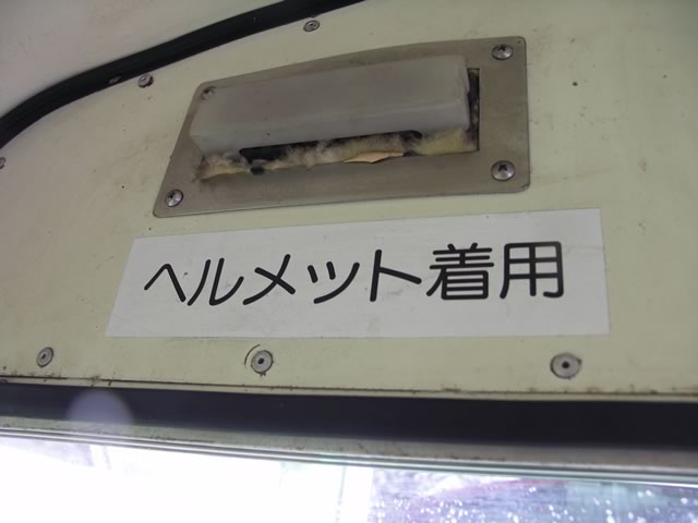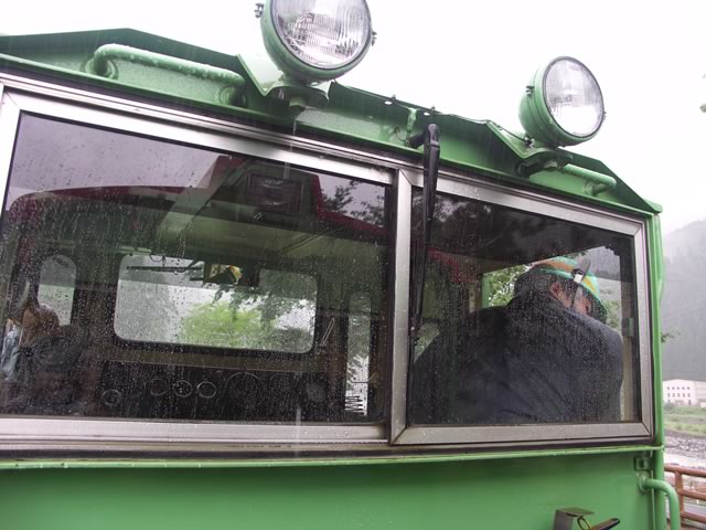 富山地鉄の立山駅を降りたツアー客一行は,駅から徒歩2分の立山カルデラ砂防博物館へと猛ダッシュ(^ ^;)。というのも,砂防工事用のトロッコ列車体験乗車会が偶然今日開かれていたのだけど,予約不可のため急いで名前を書かないといけなかったからなのですね〜。運よく僕も間に合ったので,ヘルメット被って乗ってきましたよ>トロッコ。