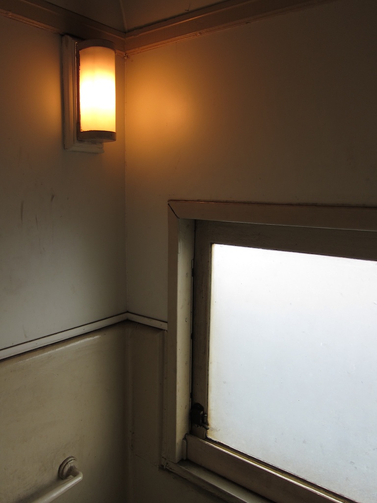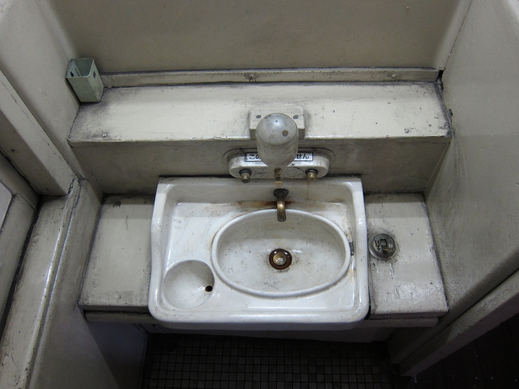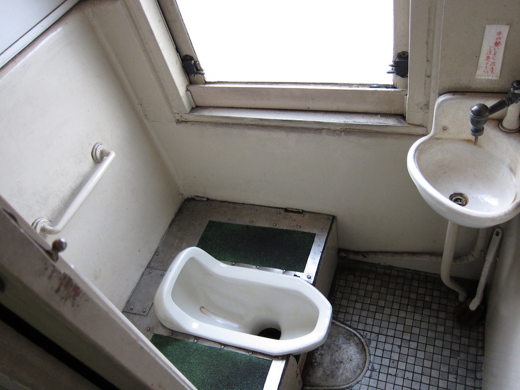 なんとトイレが使用可能になっているではないか。「停車中使用しないで下さい」と書いてあるということは,もしやポットン?!