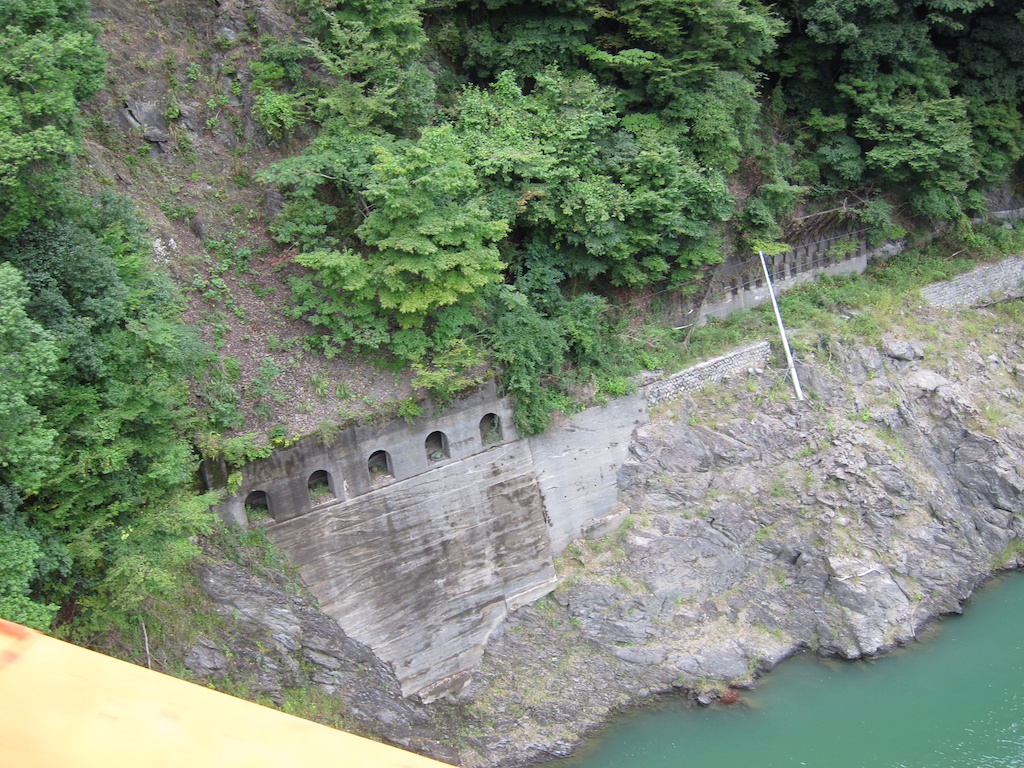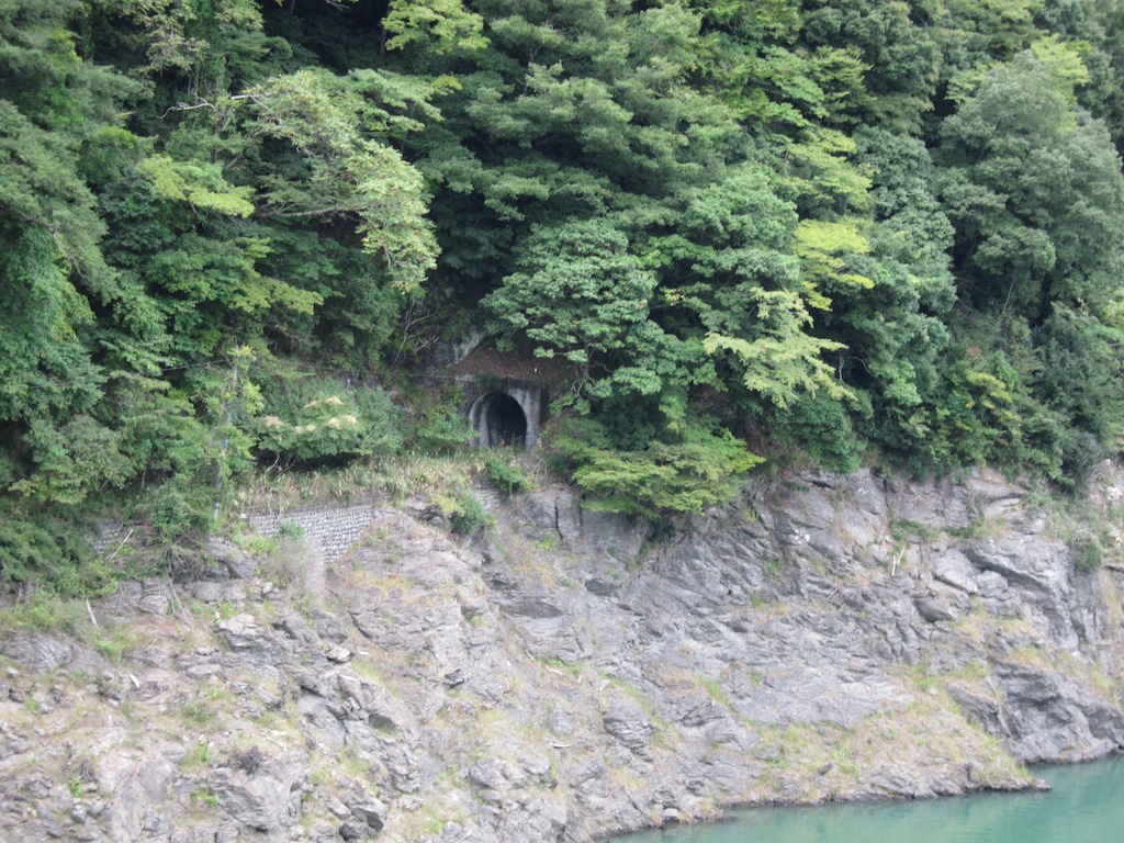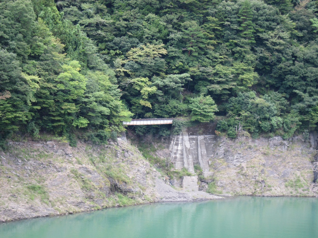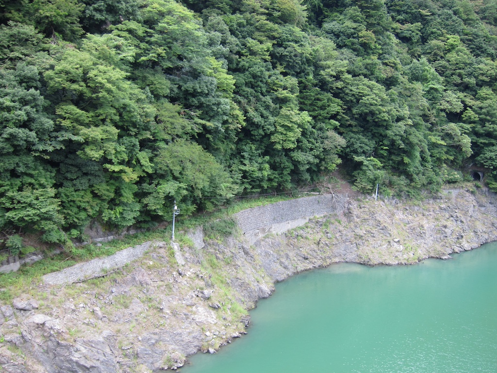 ダムの水位が下がる時期には,旧井川線の跡をみることができます。