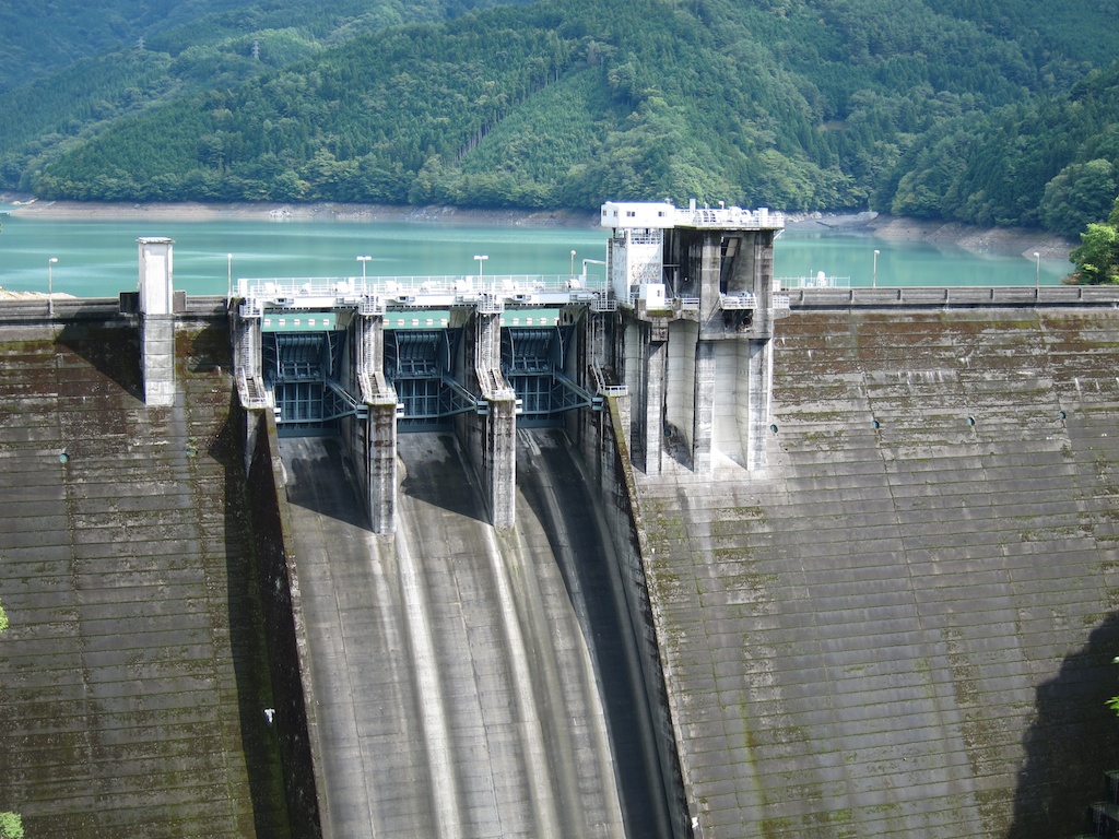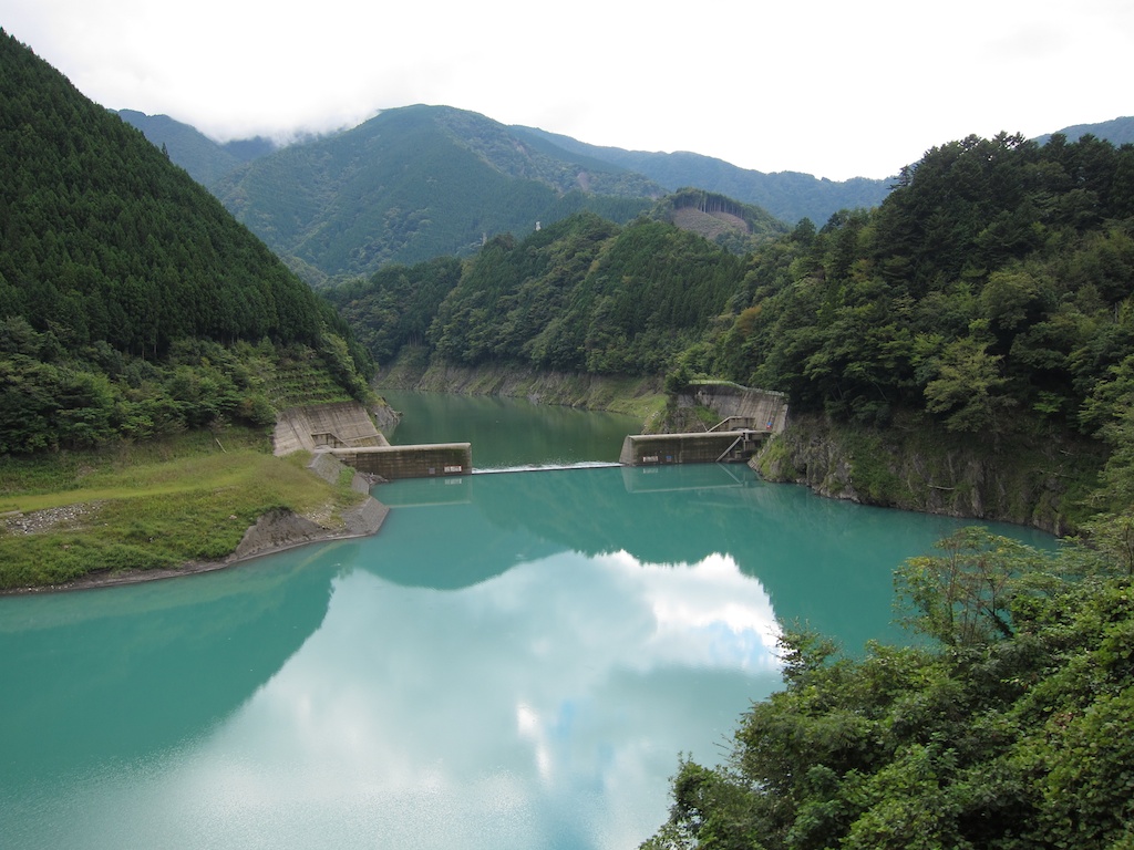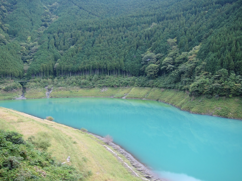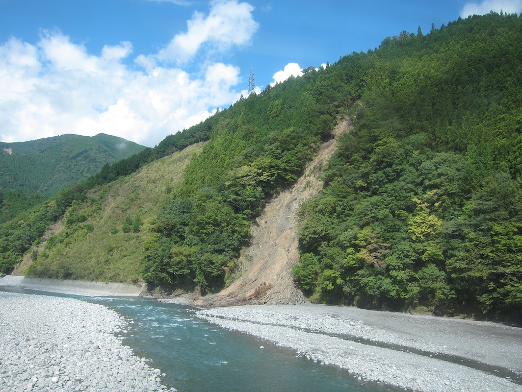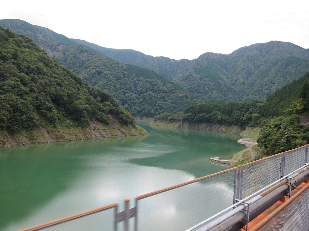 ダムの水位が下がる時期には,旧井川線の跡をみることができます。