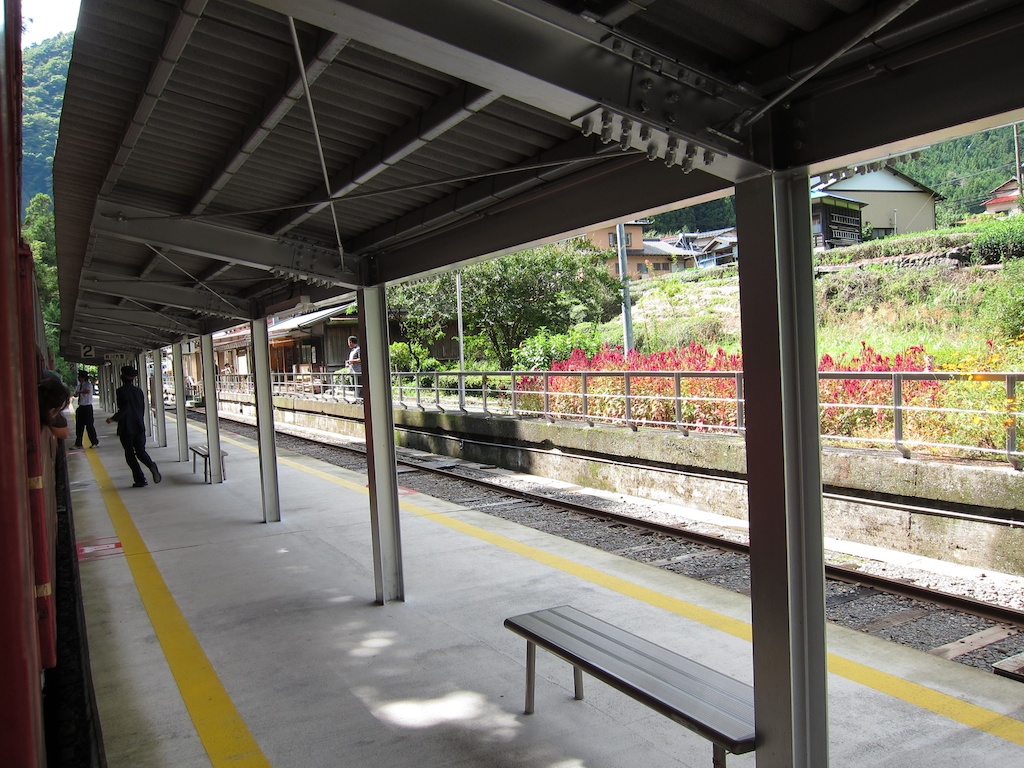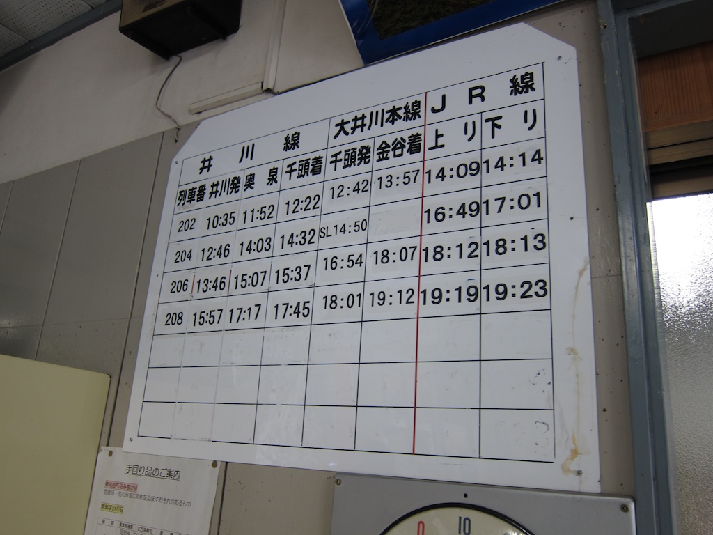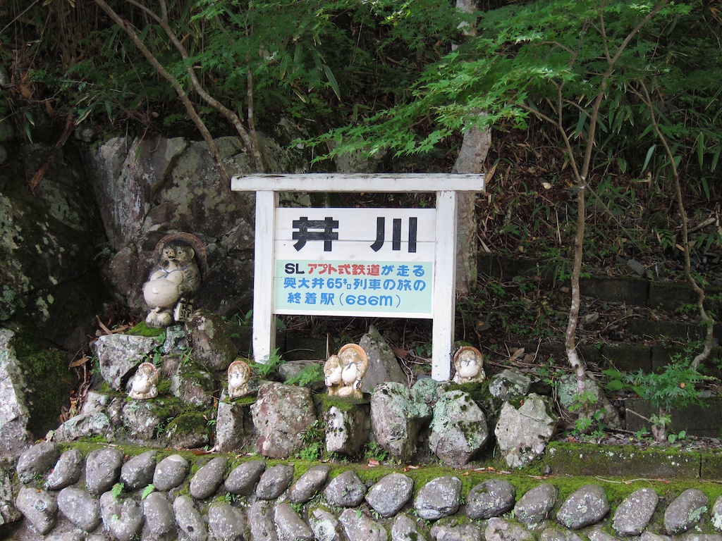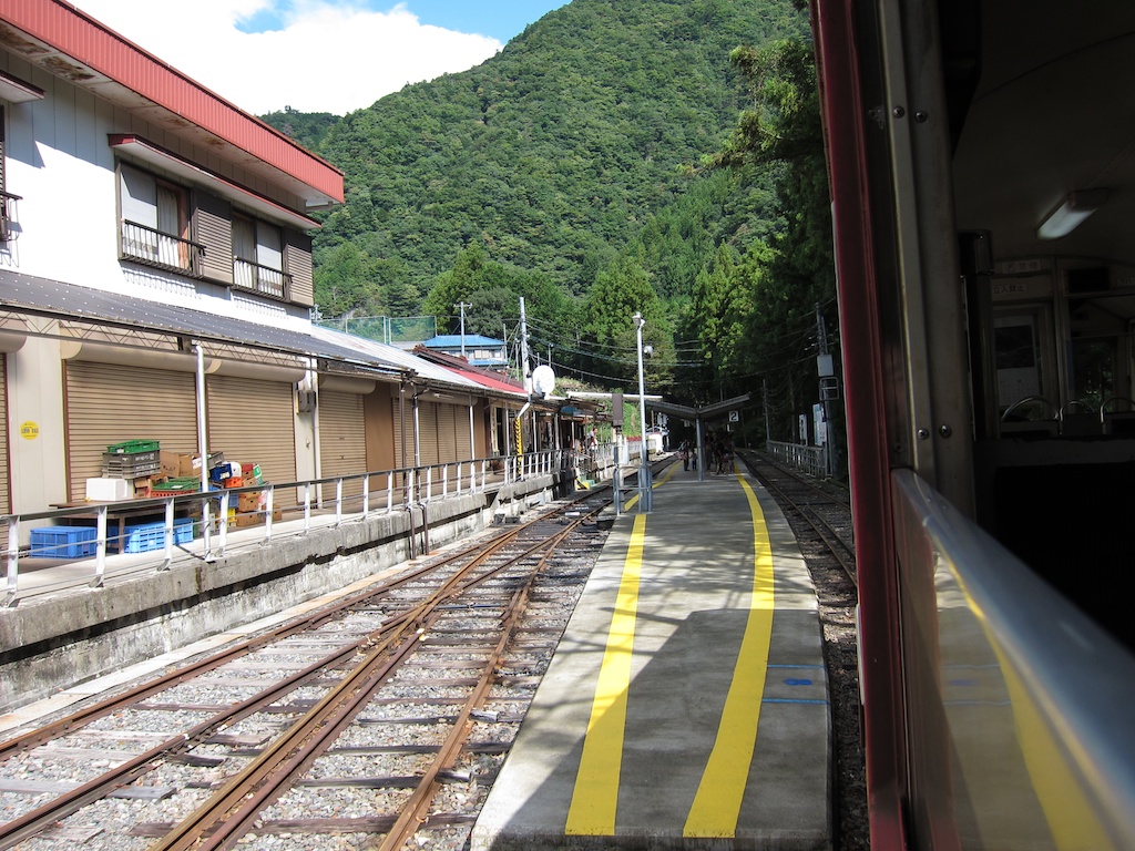 2時間以上かけ,終点井川世駅に到着。1日4本しか列車がやってこないトップクラスの秘境駅。