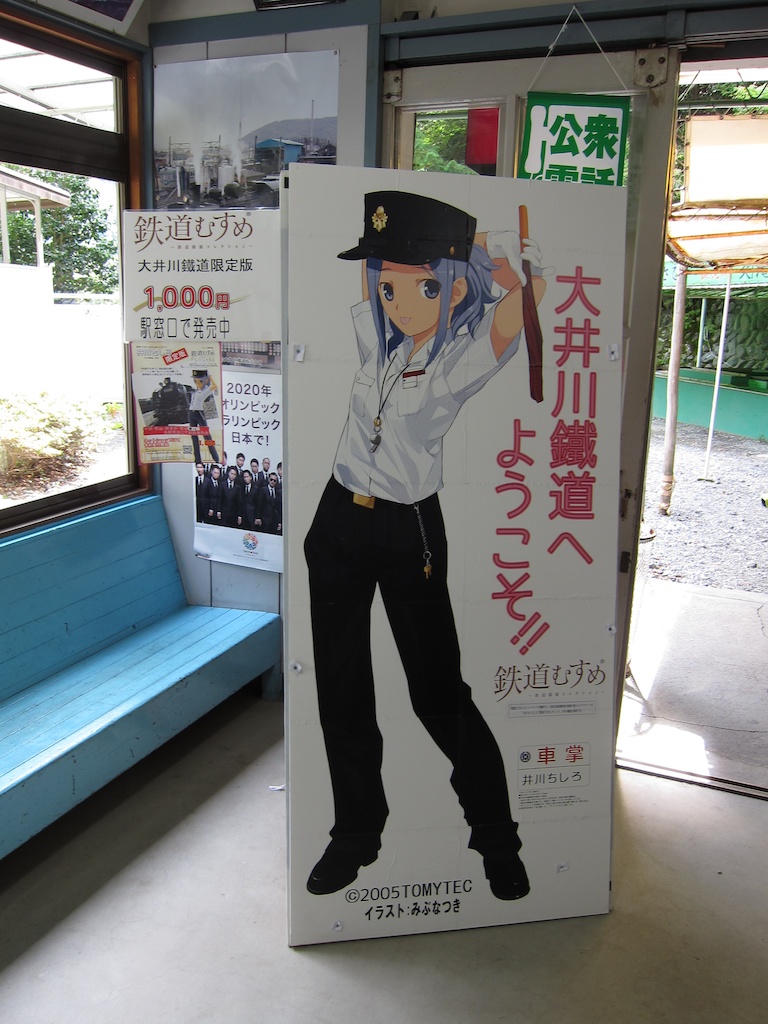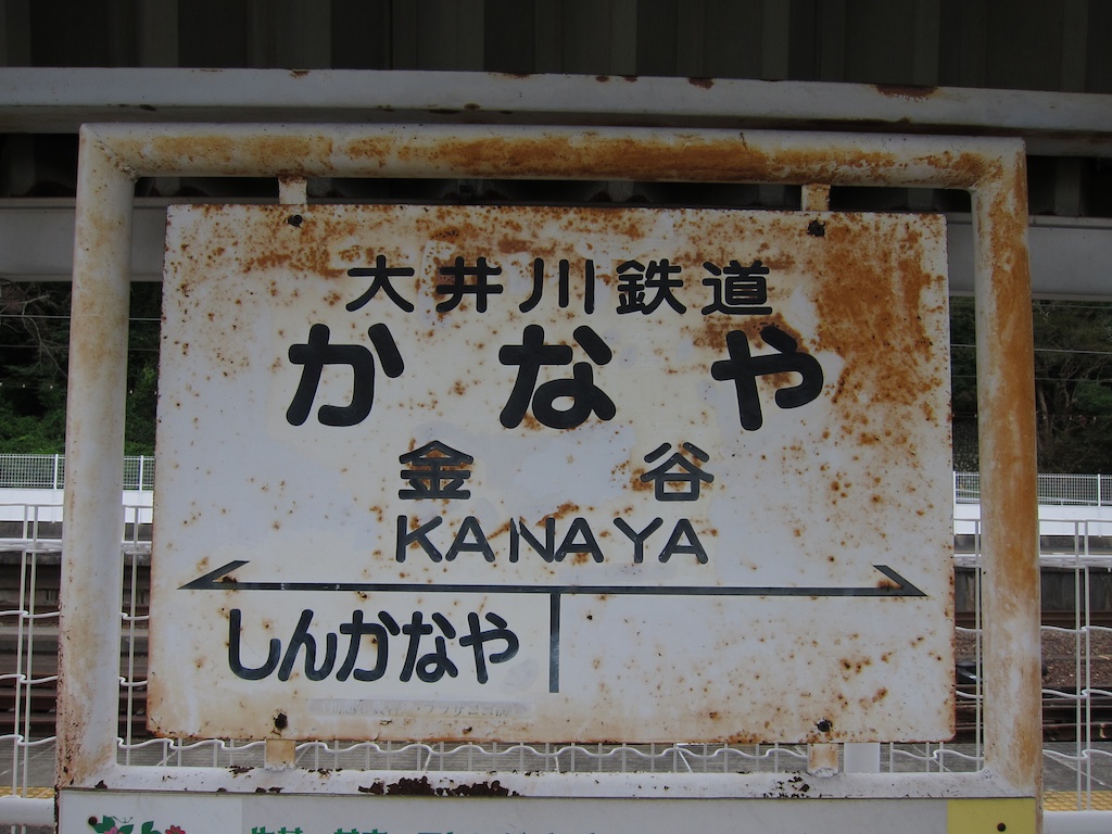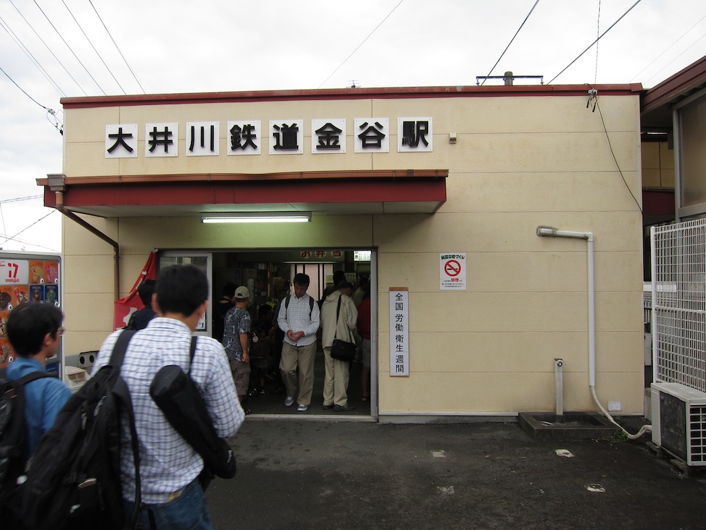 掛川駅から2駅先の金谷駅で大井川本線に乗り換え。昨秋まではSLも金谷駅まで来ていましたが,新金谷駅に転車台が完成したため,金谷〜新金谷間は電車のみの運行です。