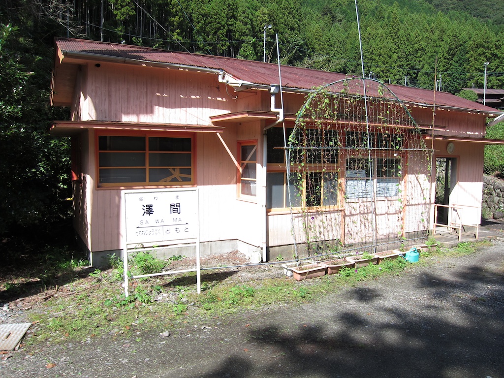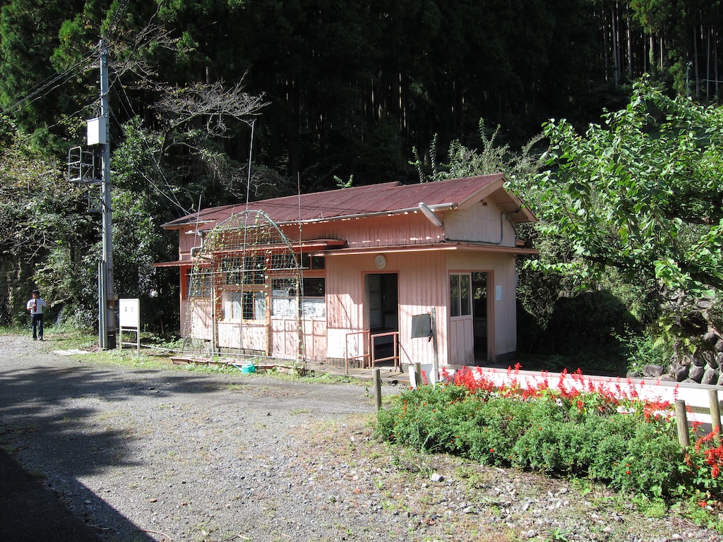 周囲にわずか4軒の家しかない土本駅。20年前に道路が開通するまでは,この地区の住民は井川線で生活物資を運んでいたのだとか。
