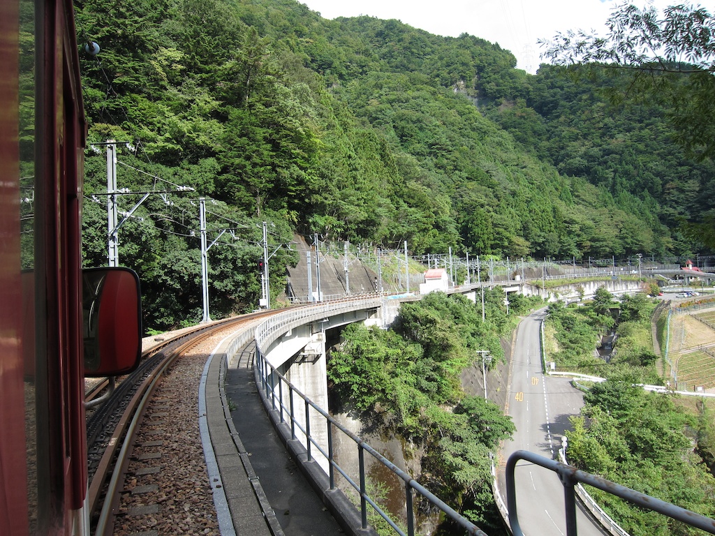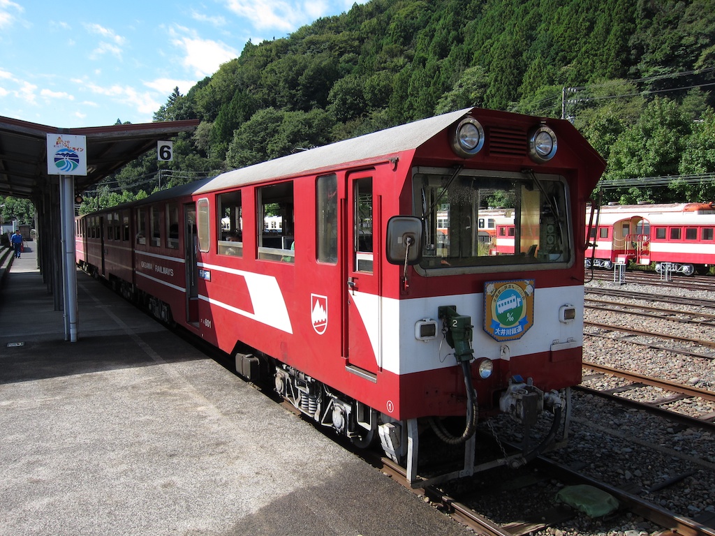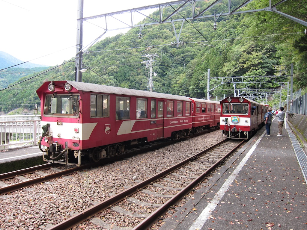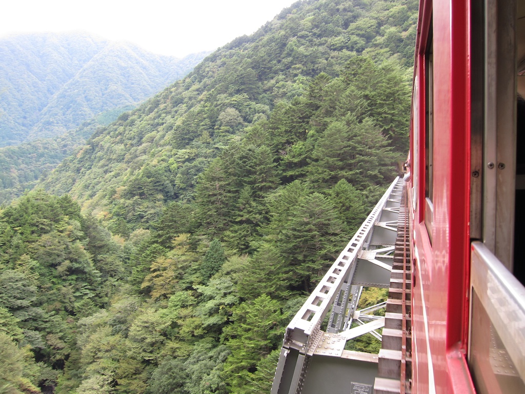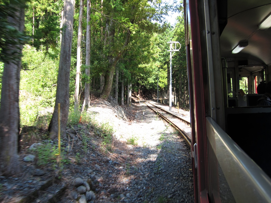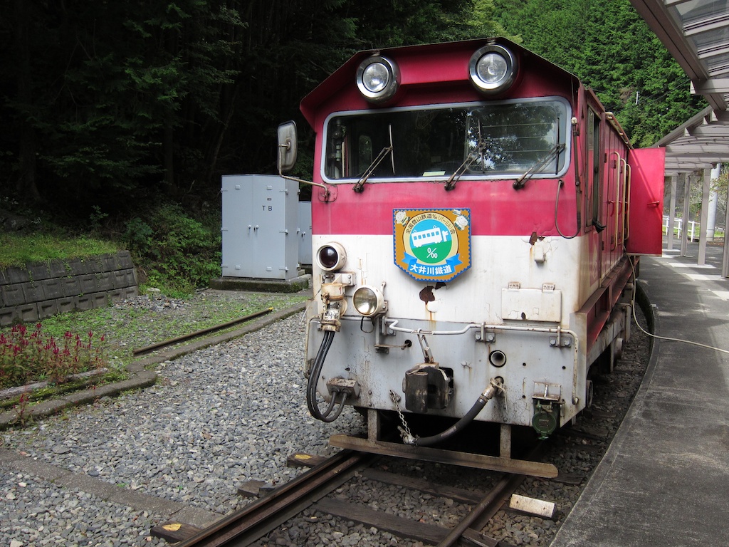 千頭駅で井川線に乗り換え。こちらは,軌間こそ1067mmなものの,車両は軽便鉄道ほどの幅しかありません。