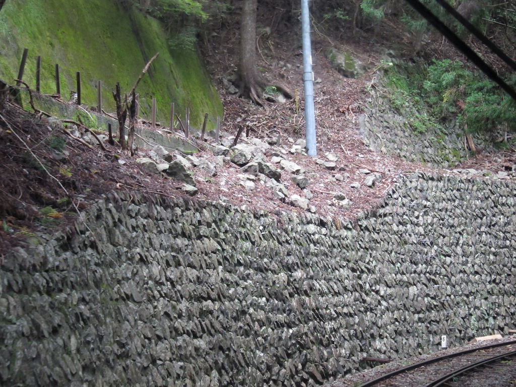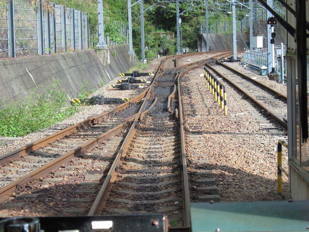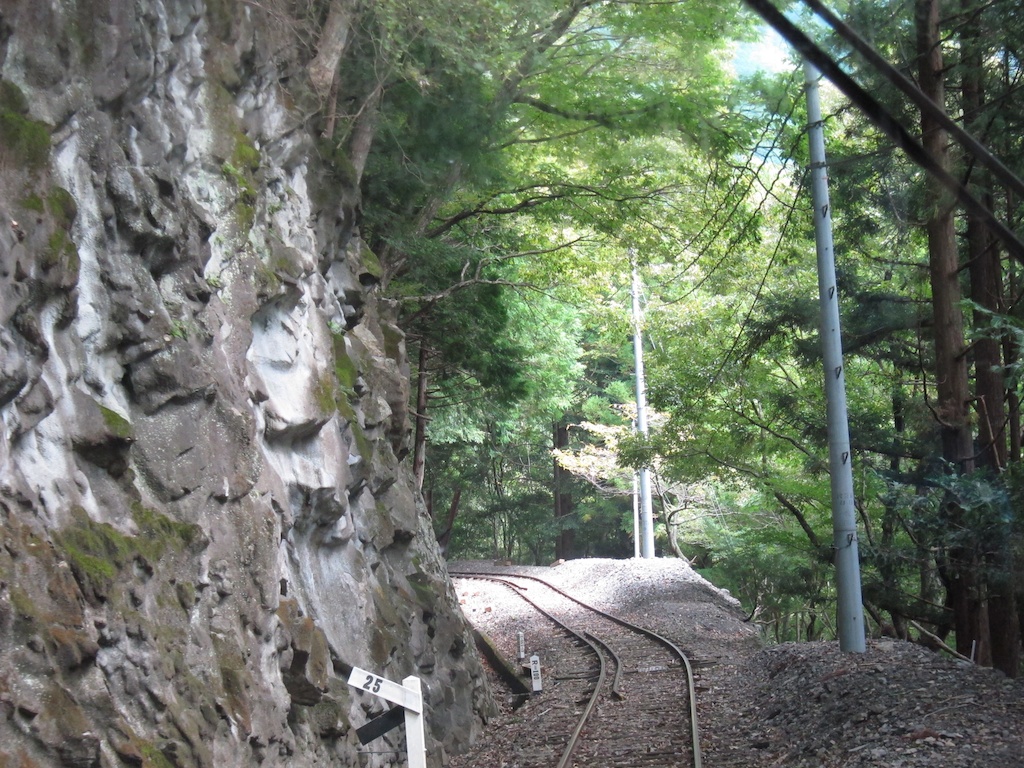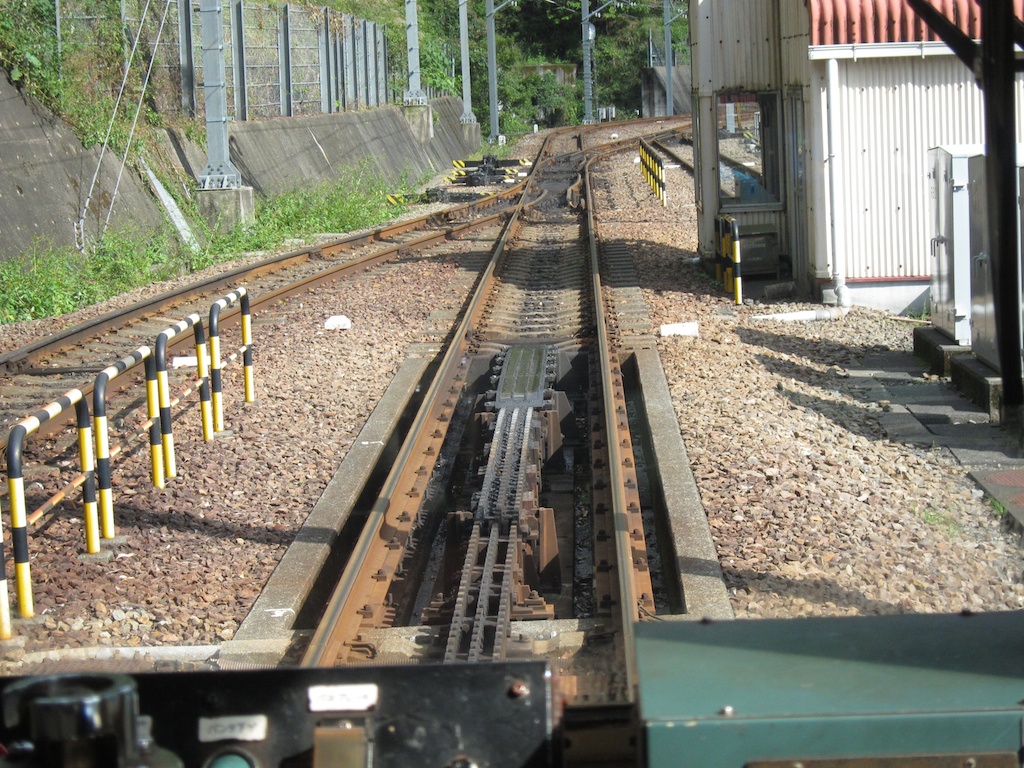 長島ダム駅からアプト区間に入る。真ん中にラックレールが見えますね。