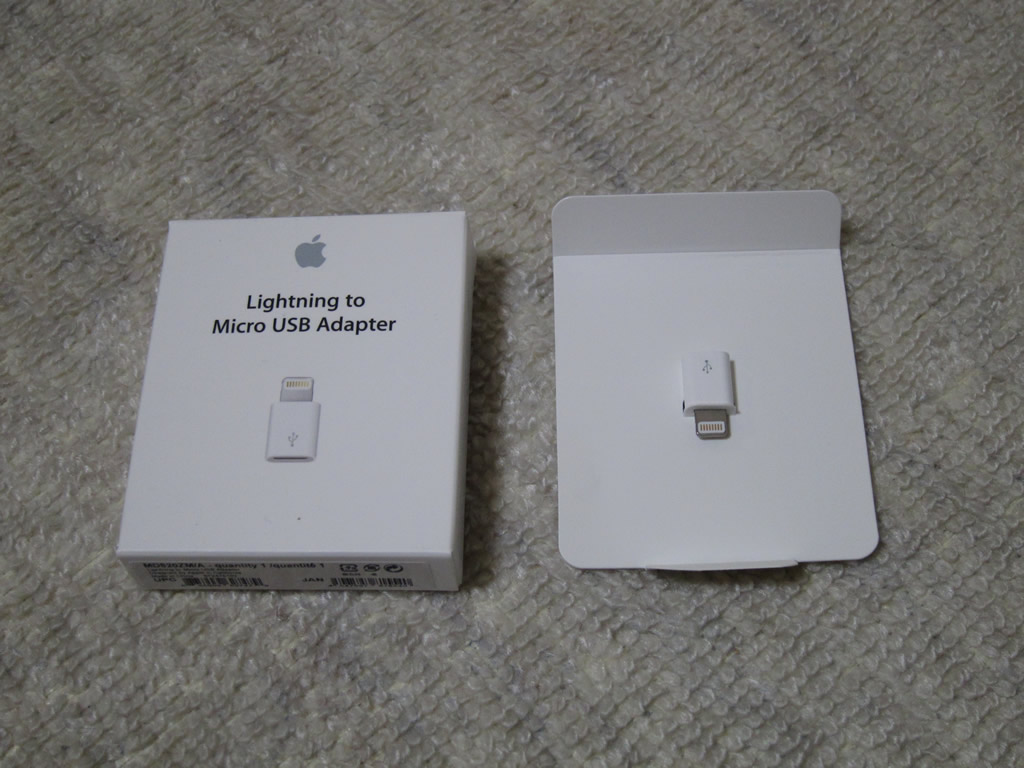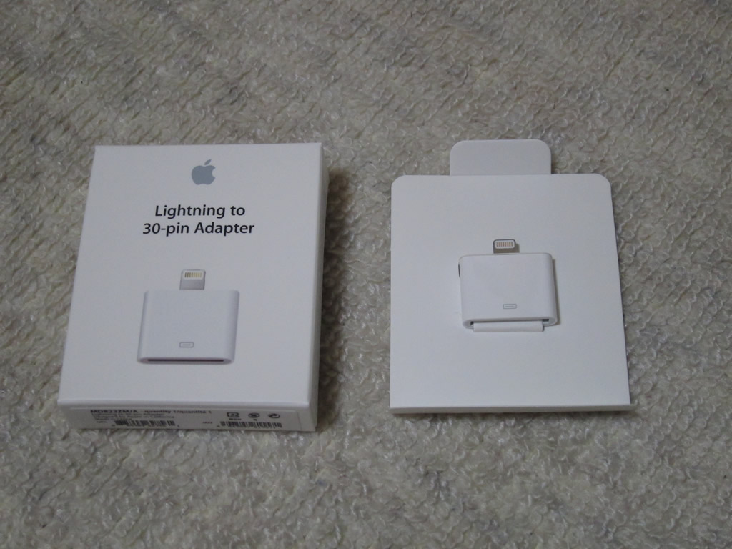 iPhone 5から外部ポートのコネクタ規格が変わったため,ケーブル類は全部買い直しデス。巻き取り式のLightningケーブルがサードパーティからまだ出ていないため,Micro USBをLightntingポートに変換するアダプタとDockコネクタを同じくLightningに変えるコンバータを購入しました。「Lightning to Micro USB Adapter」はかなり小さいので,無くしてしまいそう…。
