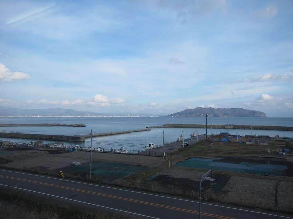 函館から今度は木古内方面へ。函館湾越しに函館山が顔をのぞかせています。